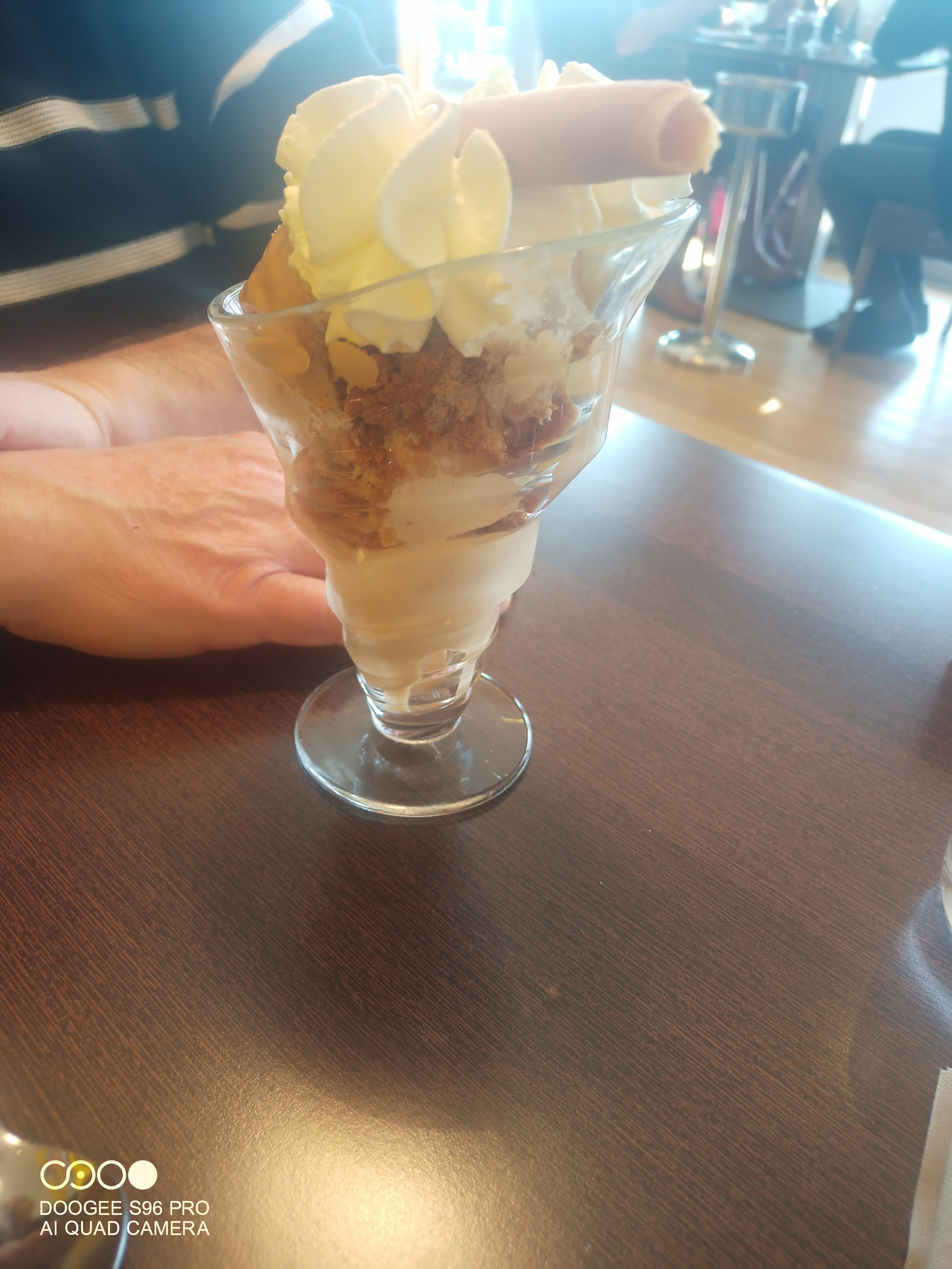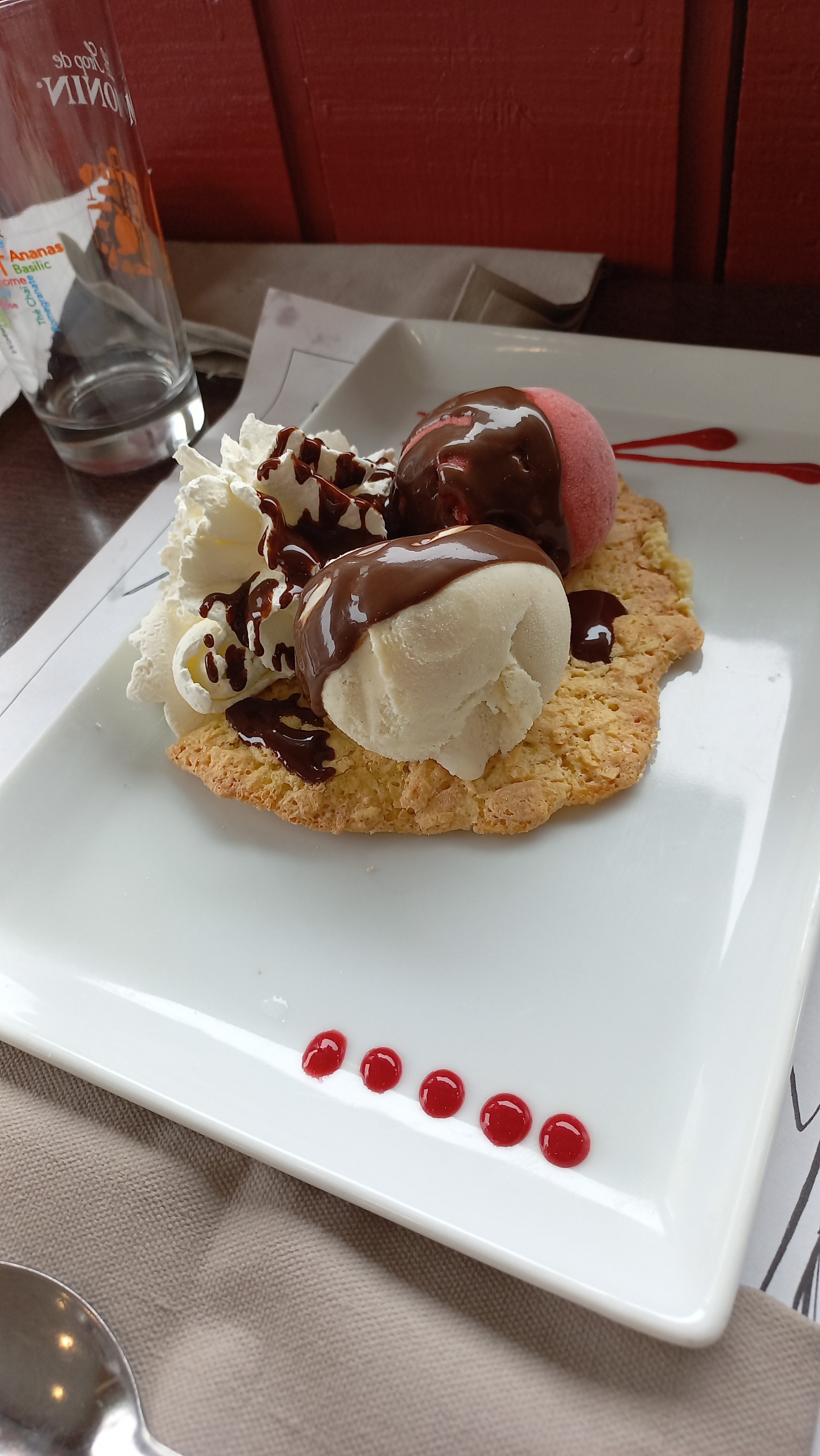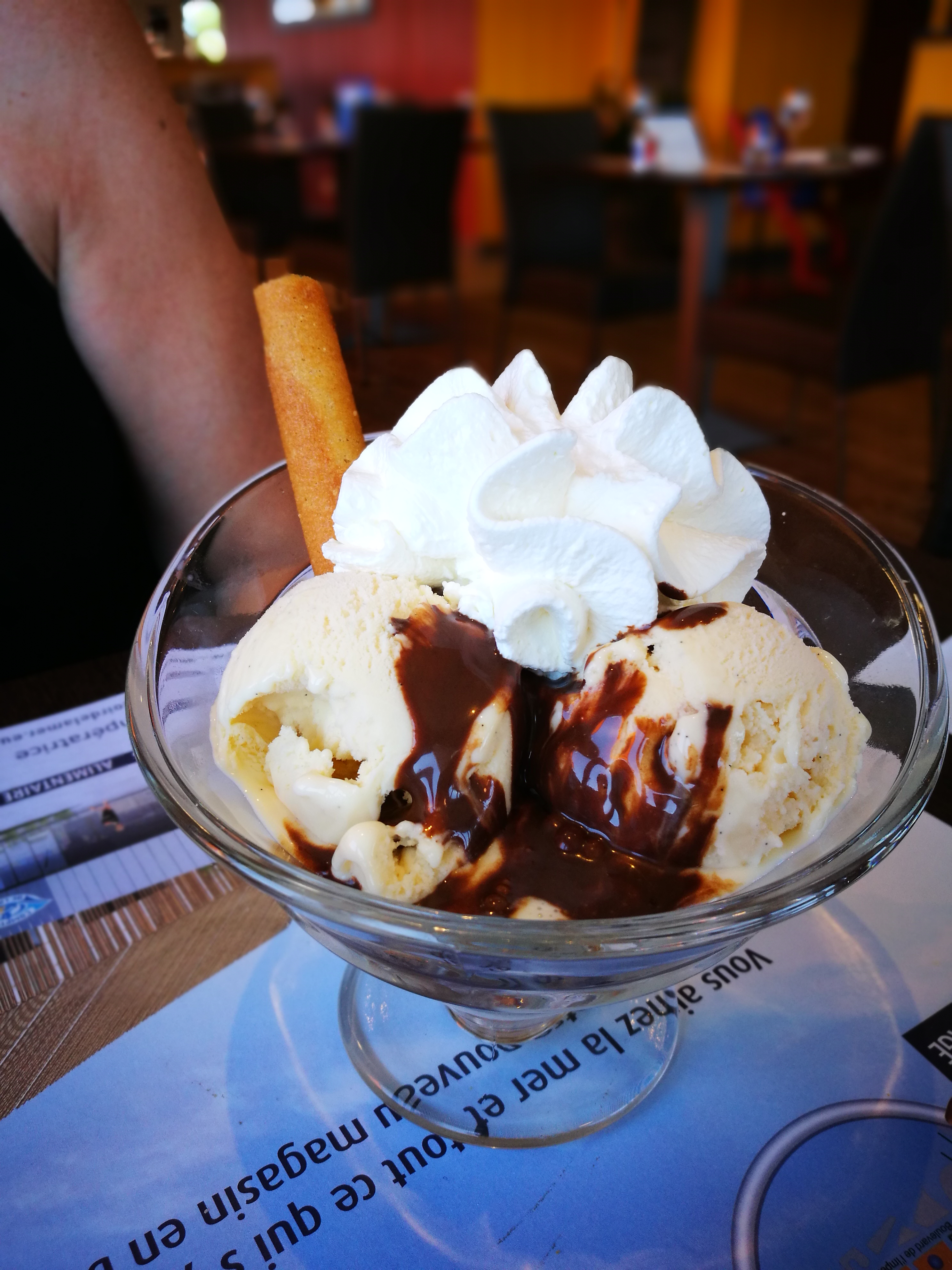 Accueil très chaleureux et le personnel est très gentil. On s est régalé. Nous avons pris des plats du jour et un welsh. En dessert, les glaces sont succulentes. De plus, la vue est magnifique