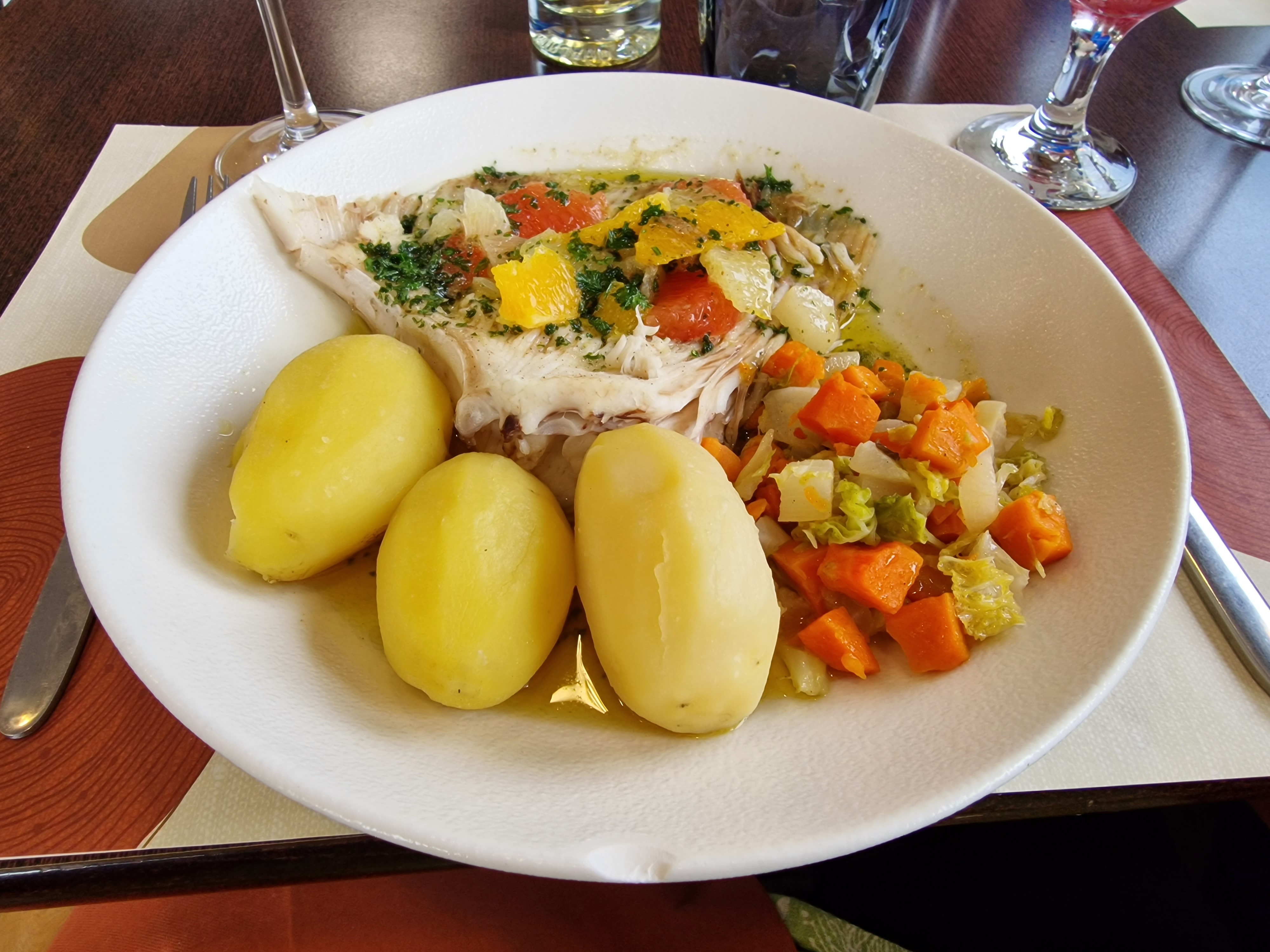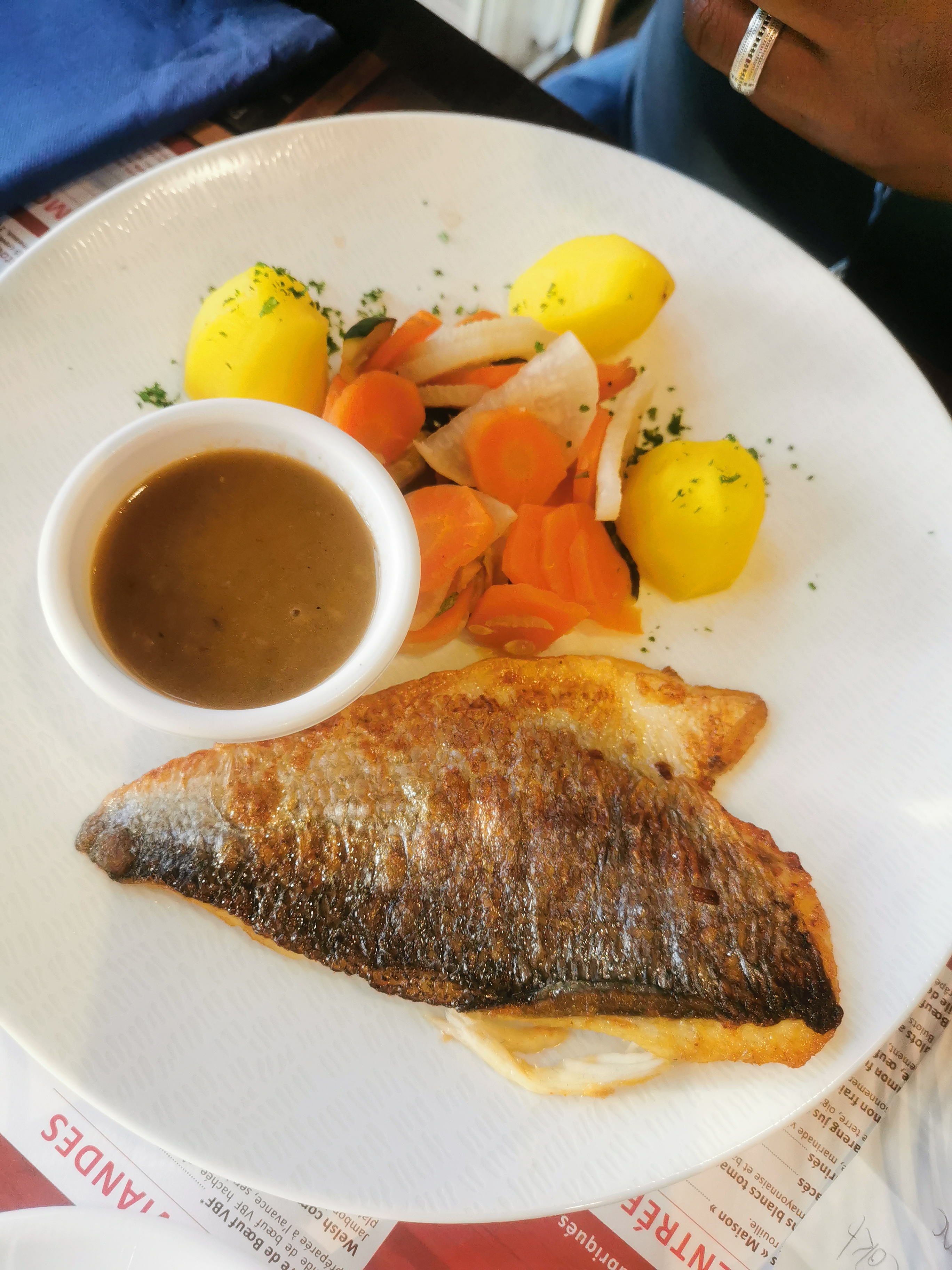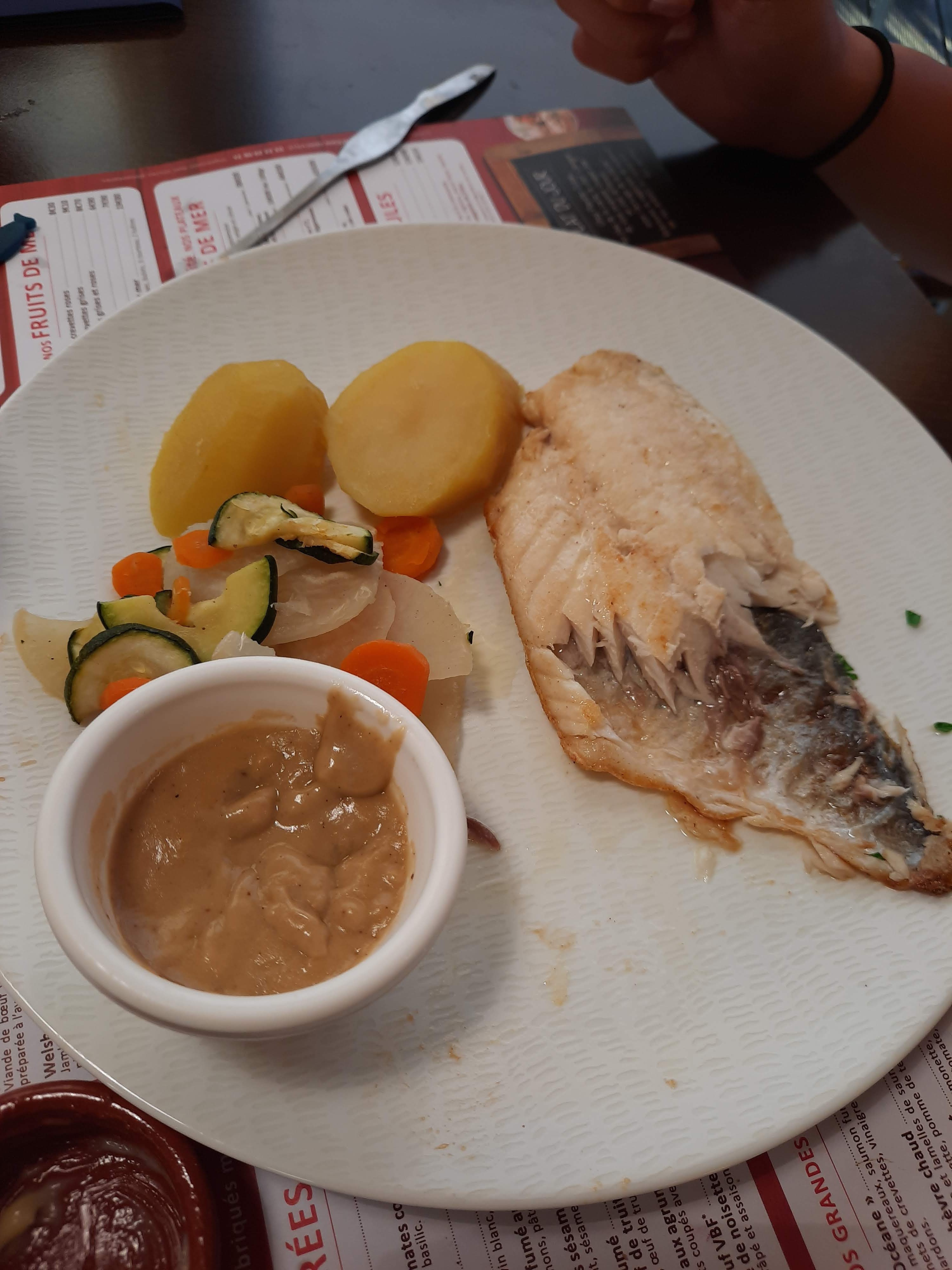 Poisson parfaitement cuit, soupe de poisson délicieuse, seul petit reproche le gâteau du baba au rhum un peu trop cuit (pas assez moelleux à mon goût) mais il a été tout de même englouti.