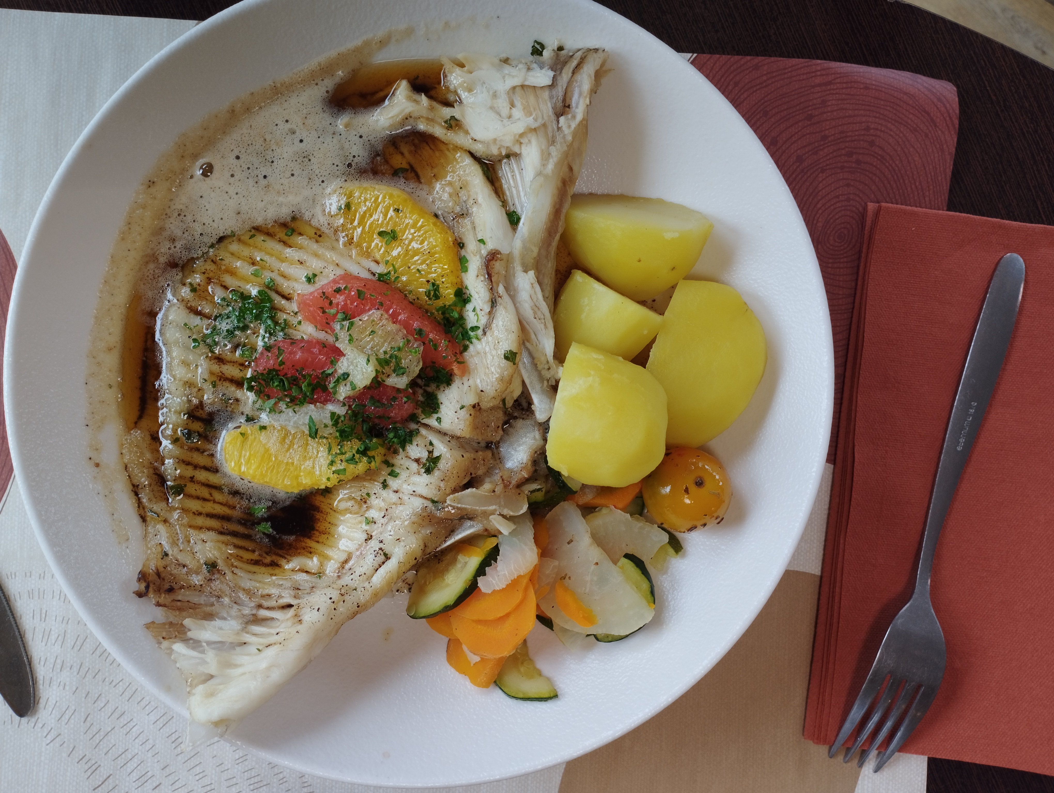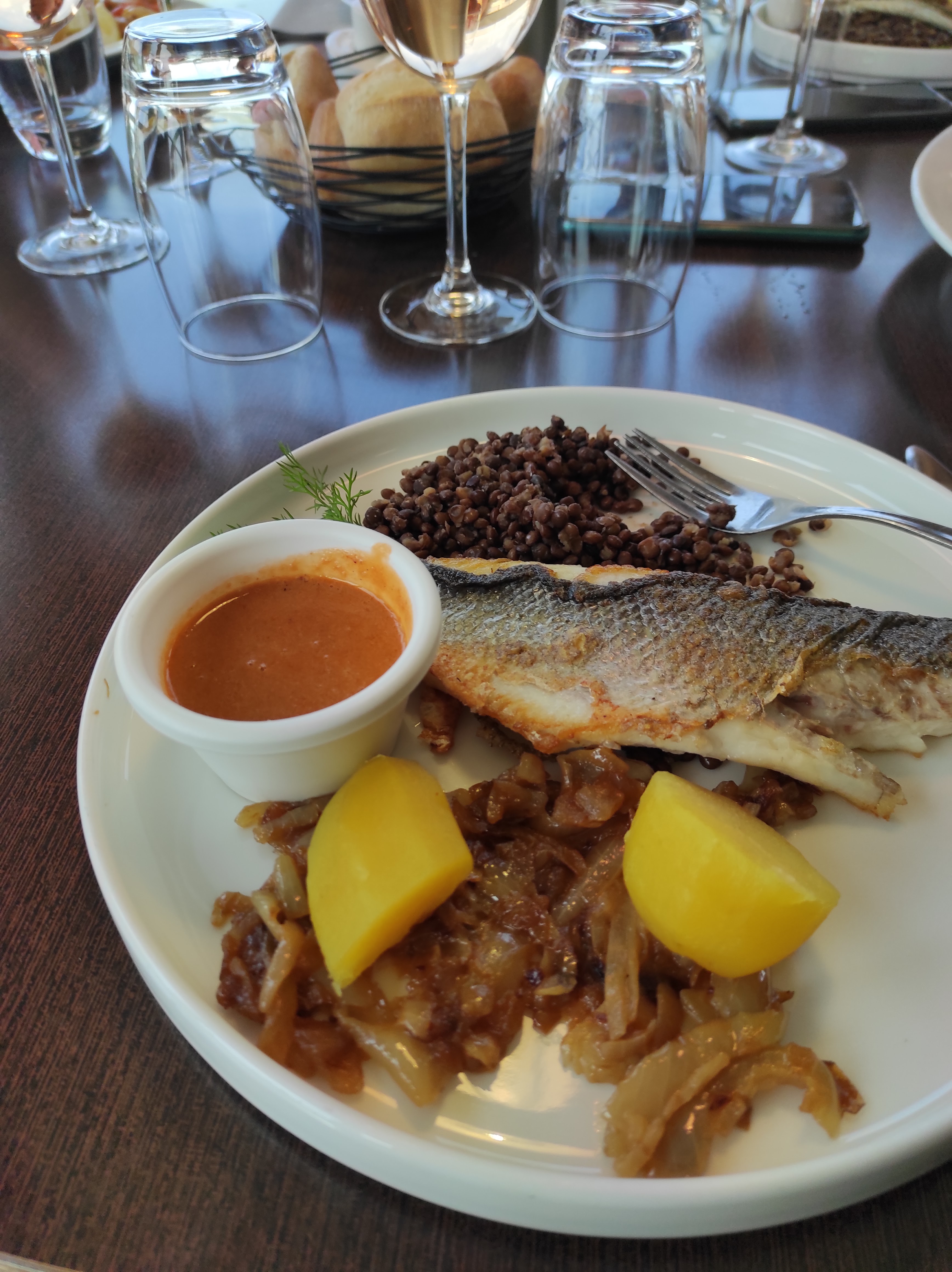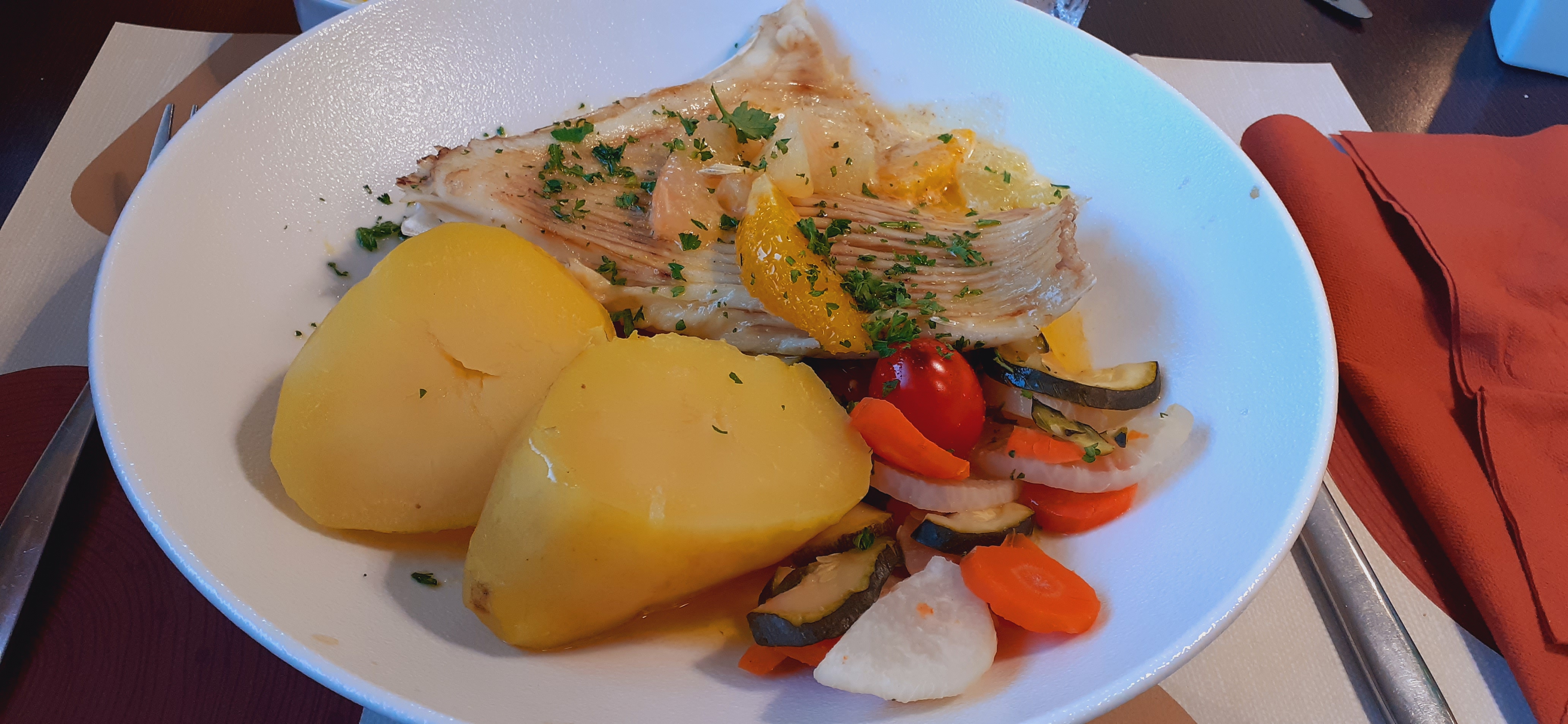 Poisson parfaitement cuit, soupe de poisson délicieuse, seul petit reproche le gâteau du baba au rhum un peu trop cuit (pas assez moelleux à mon goût) mais il a été tout de même englouti.