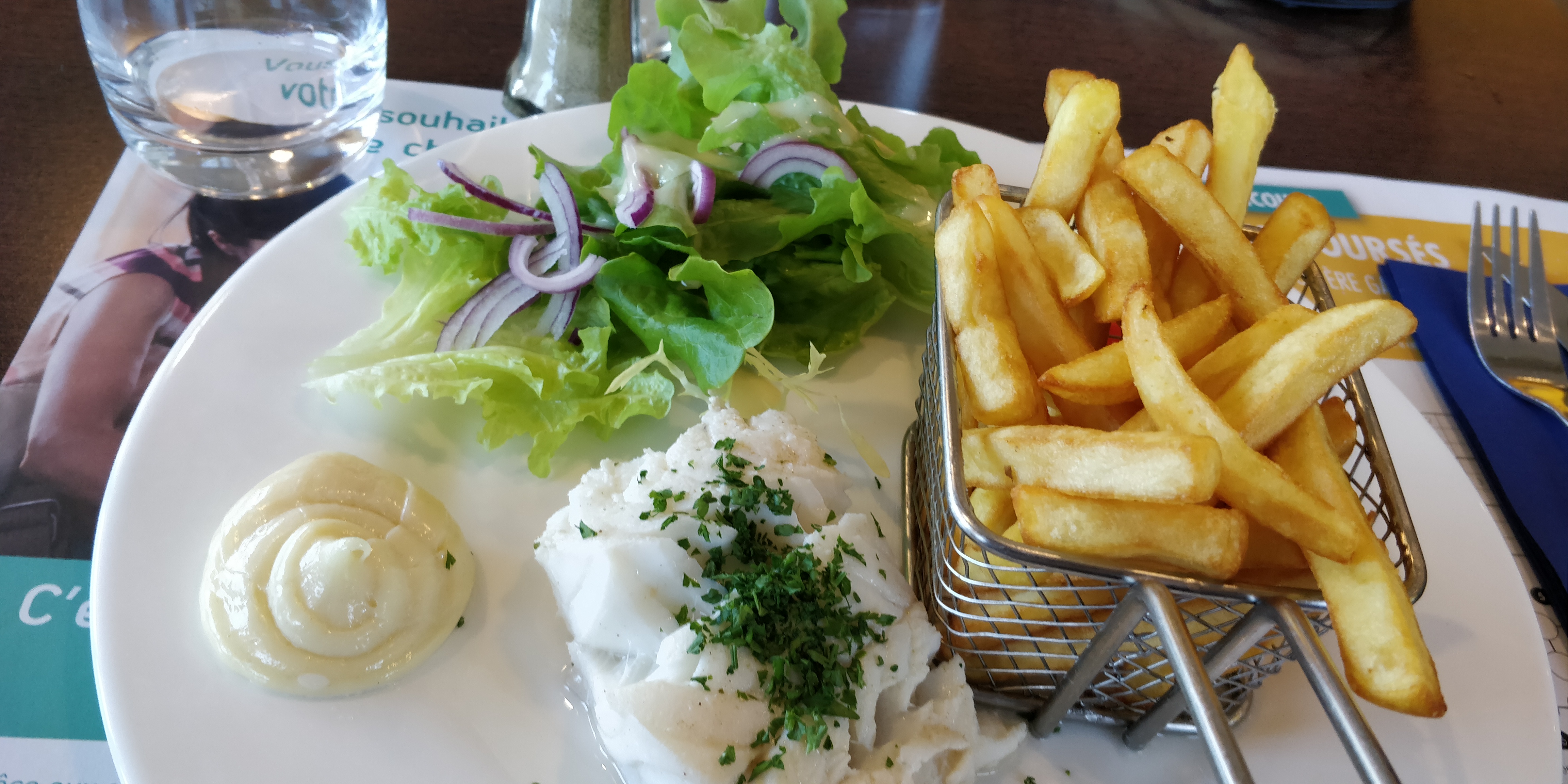 Cabillaud frais, dommage qu'il n'était pas servi avec des légumes ou du riz à la place des frites.