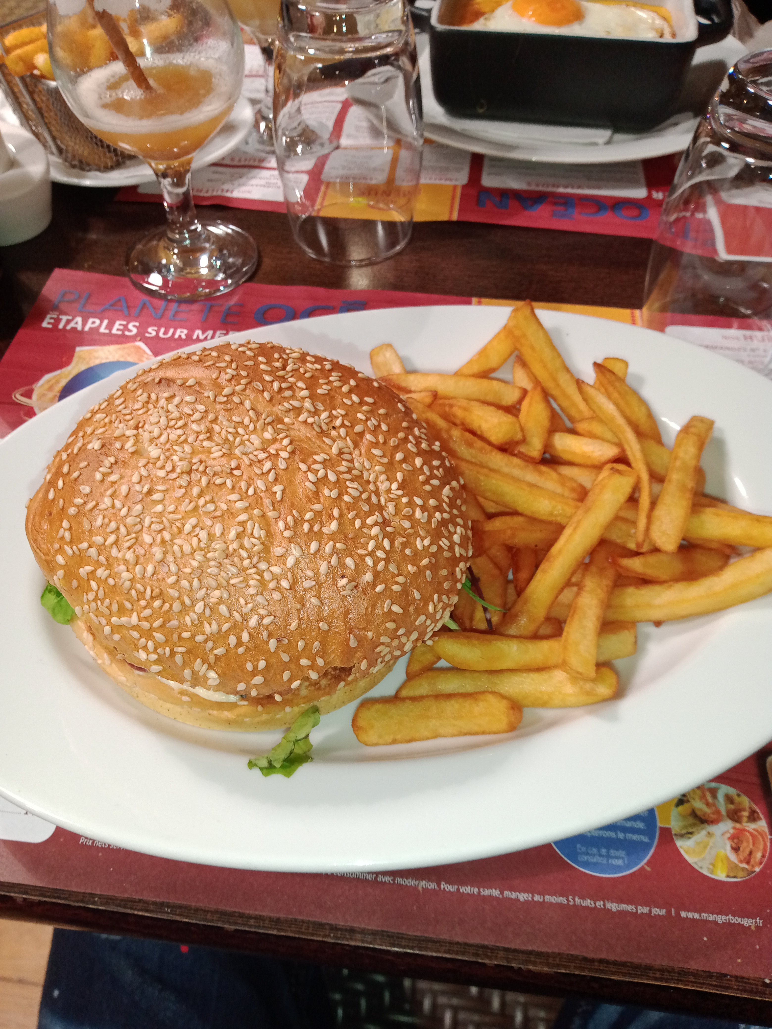 Très bon accueil, nous avons dîner sur la terrasse avec vue sur un aérodrome. Très bon moment passé dans ce resto. Les moules étaient très bonnes, et le burger au poisson de mon mari aussi.