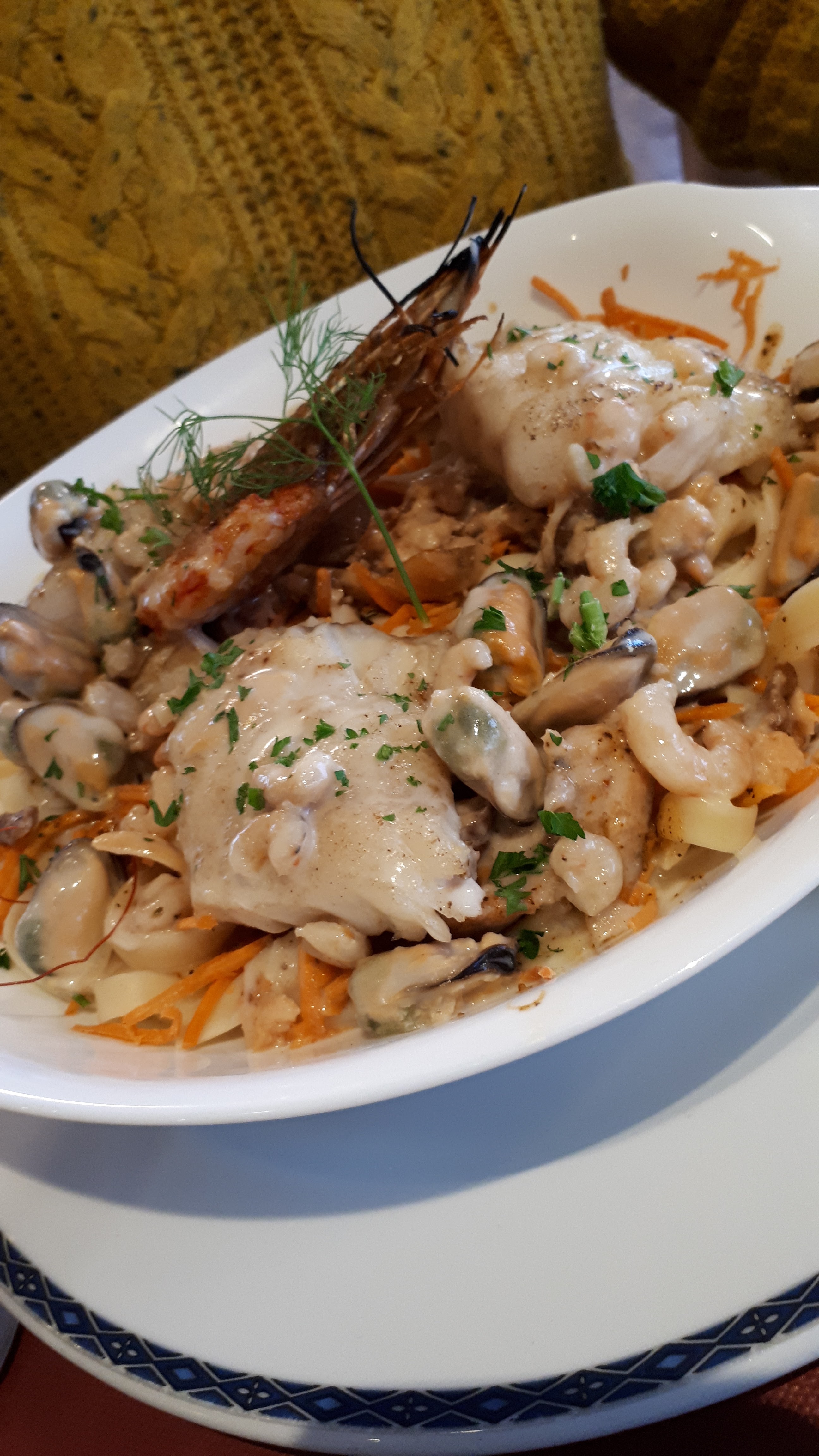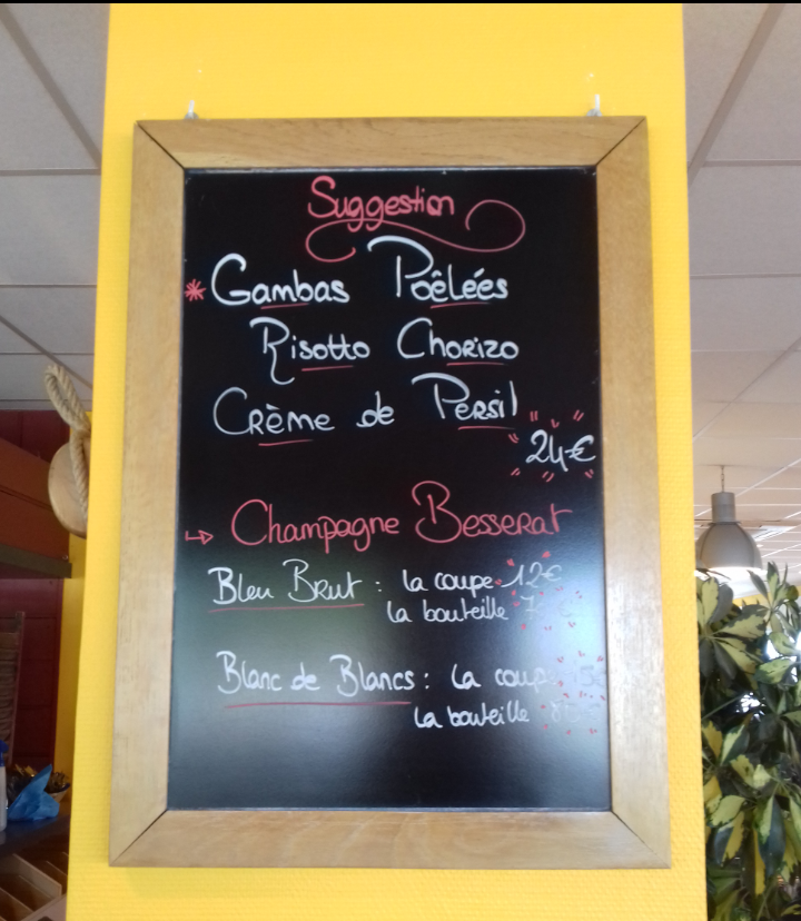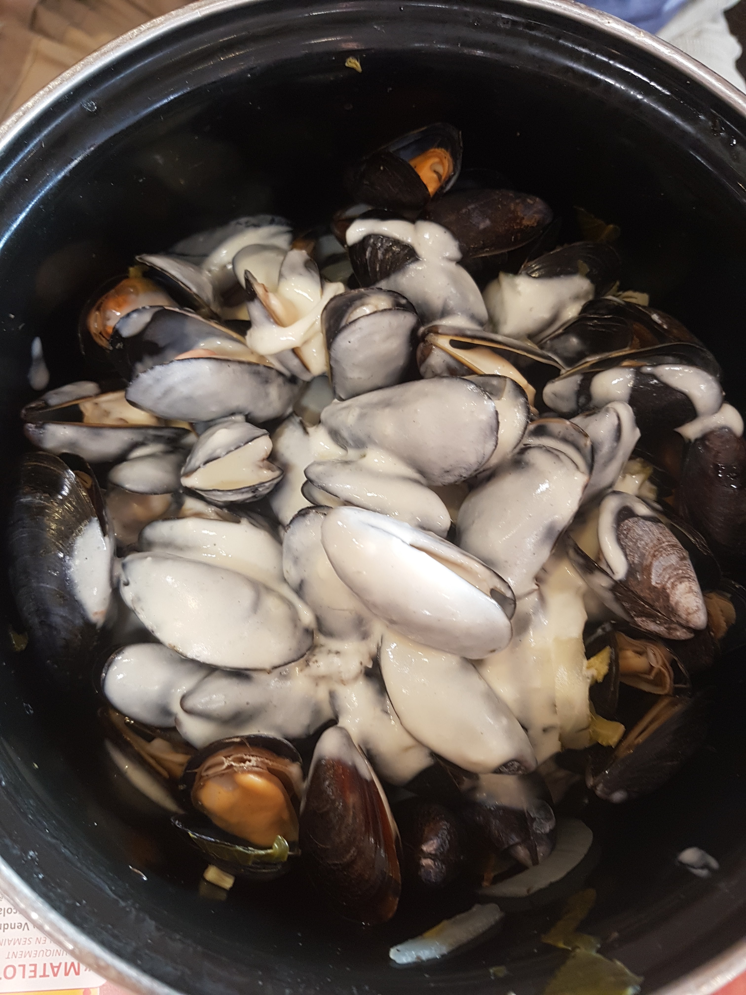 Petit resto en amoureux mercredi moi moules marinière qui n’avait pas de goût il y manquait de persil céleri et d’assaisonnement je pense, mon mari a pris à l’ail il a aimé. Par compte super service car j’ai demandé si je pouvais avoir de la sauce à l’ail moi aussi et de suite j’ai été servie, mais cette sauce manquait encore de goût car pas de poivre et autres. Je reviendrai volontiers car j’ai vu de belles assiettes autour de moi.