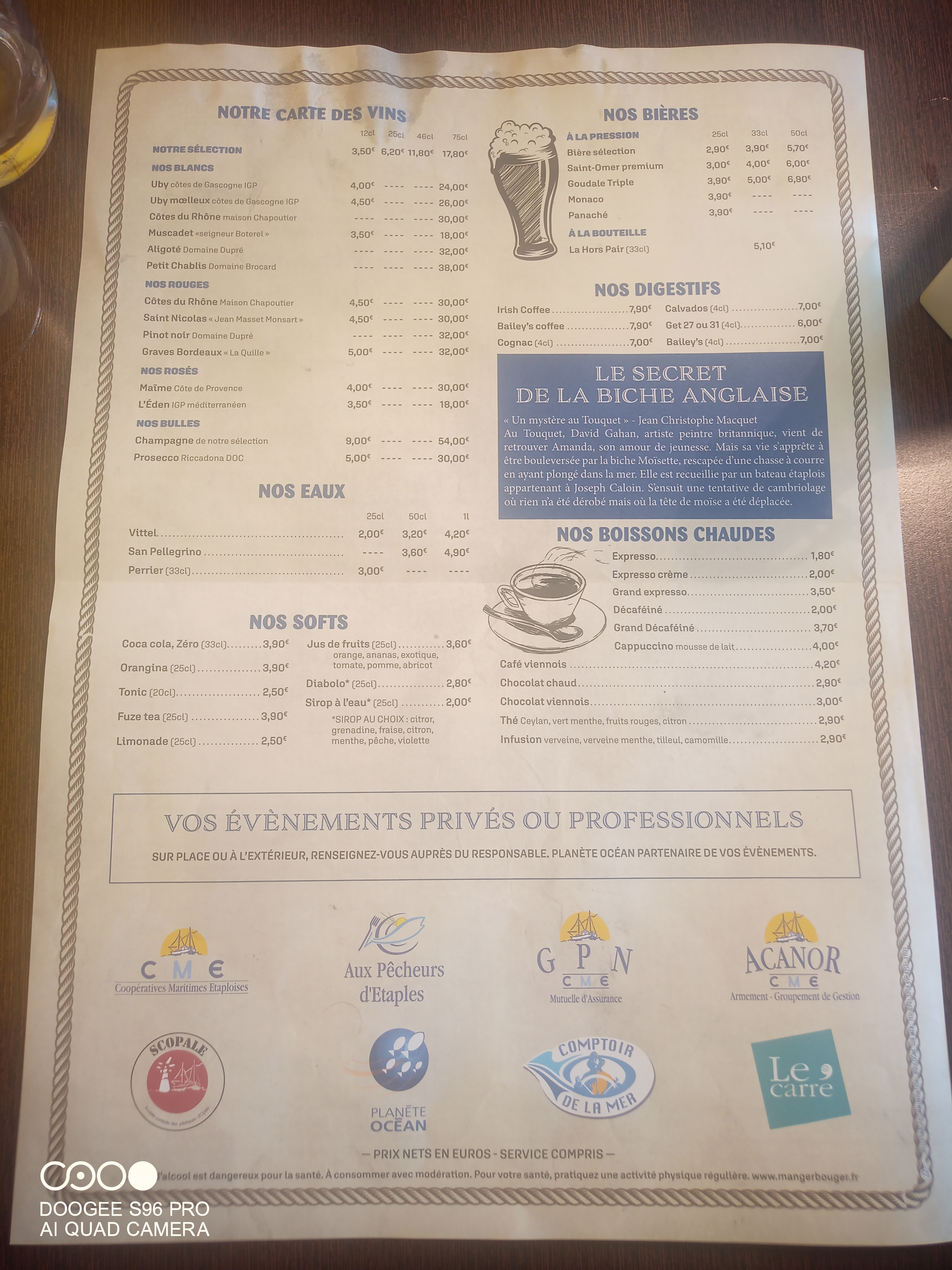 Parfait ☺ j'y ai mangé au cours d'un déplacement professionnel. Les plats sont super bons et copieux pour un prix raisonnable. Le cadre est magnifique en hauteur on domine le port d'Etaples. J'y suis allé deux fois. Si je reviens dans la région j'y retournerai Sans problème.