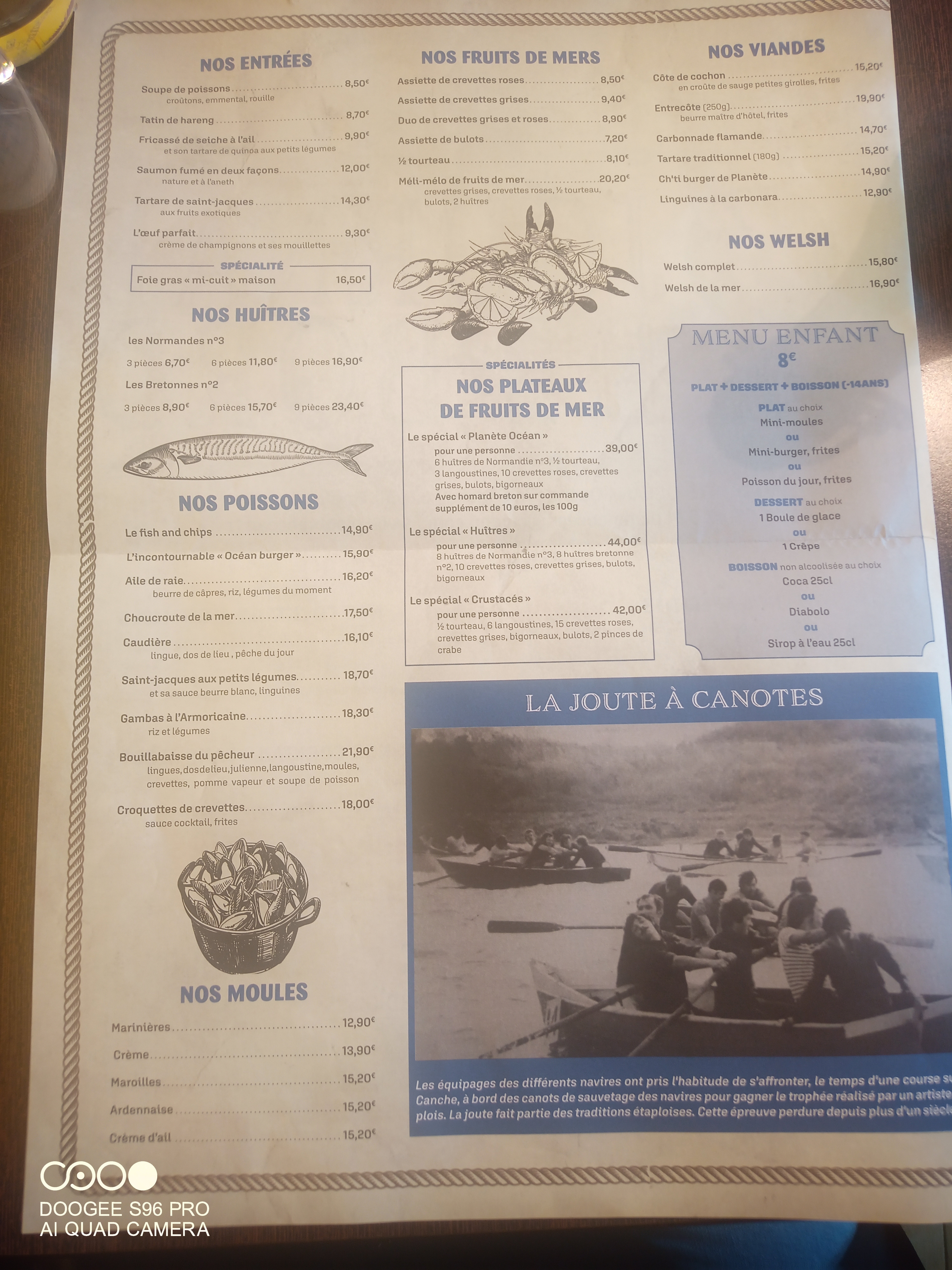 A visiter pour ts le monde , rapport qualité prix super, de très bon plats, temps d’attente raisonnable, beaucoup de choix, plat enfant pas de tout cher, au niveau accueil : 10/10... service rapide et beaucoup des sourires, bravo , je le recommande en couple ou en famille, il faut pas passer par Étaples sans passer par planète océan 😊😊😊