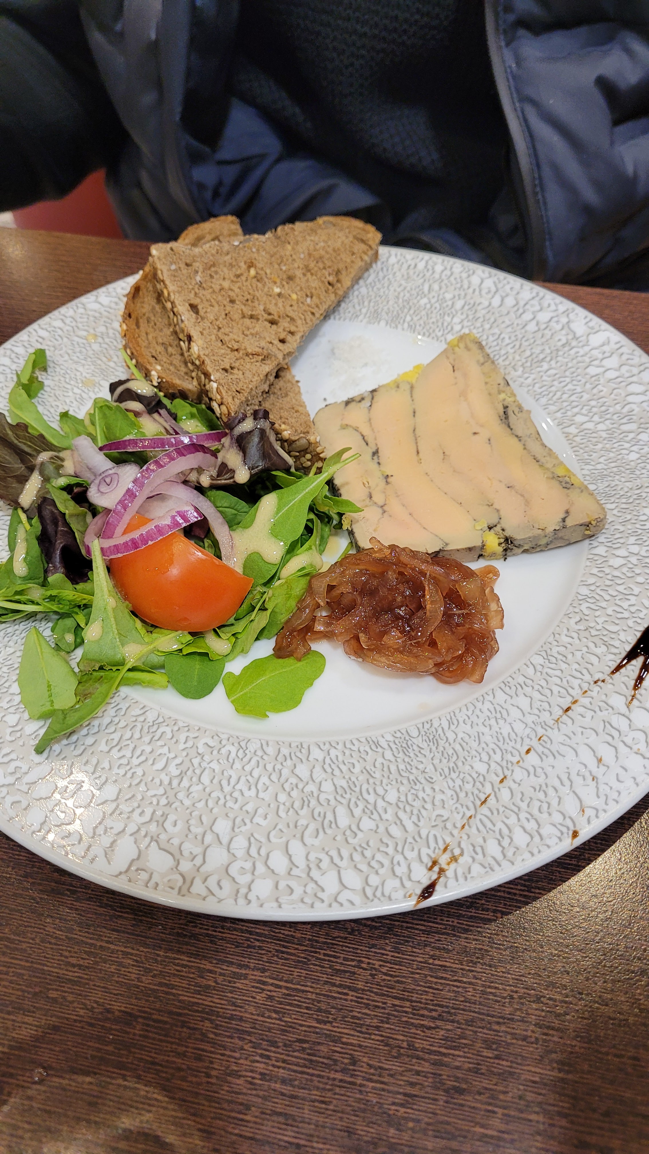 Foie gras et croquettes de crevettes maison et très bon profiteroles avec chocolat chaud maison miam. De bons produits et très bon rapport qualité prix. Le prix des boissons est correct. Jolis cocktails. En couple pour le dîner, l'ambiance n est cependant pas romantique avec une table dans le passage près du bar et un éclairage trop fort. Le personnel est sympathique mais un peu bruyant. C est beau la jeunesse ! Il ne manque pas grand chose pour mettre 5 étoiles. On reviendra.