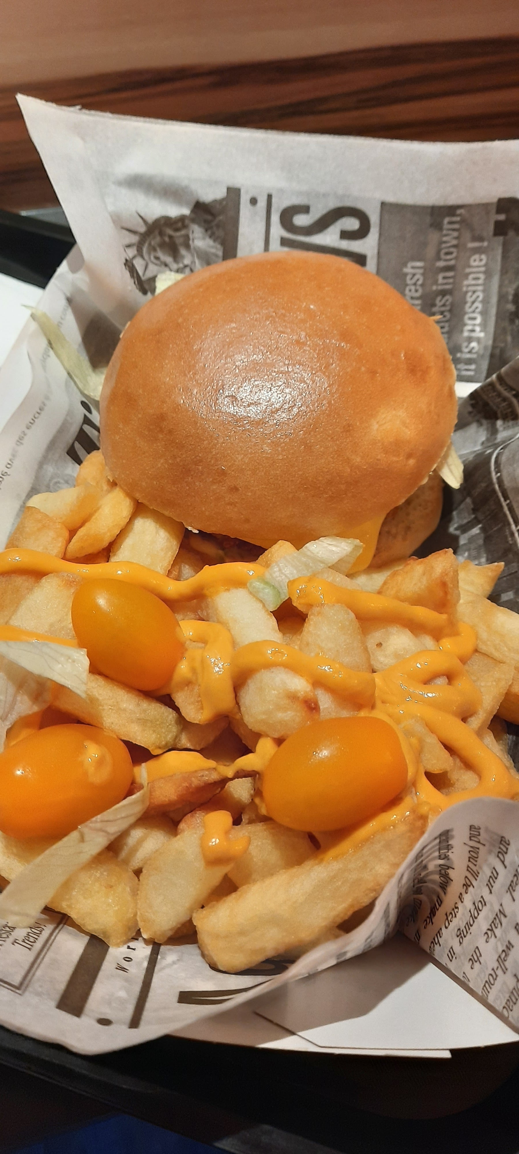 Excellent! Très bon repas, très bonne qualité, ce qu'on mange n'est clairement pas du surgelé, (burger chicken +frites +sauces +boisson pour 9.90€ ça vaut largement le coup) Personnel sympathique, et intérieur très joli.