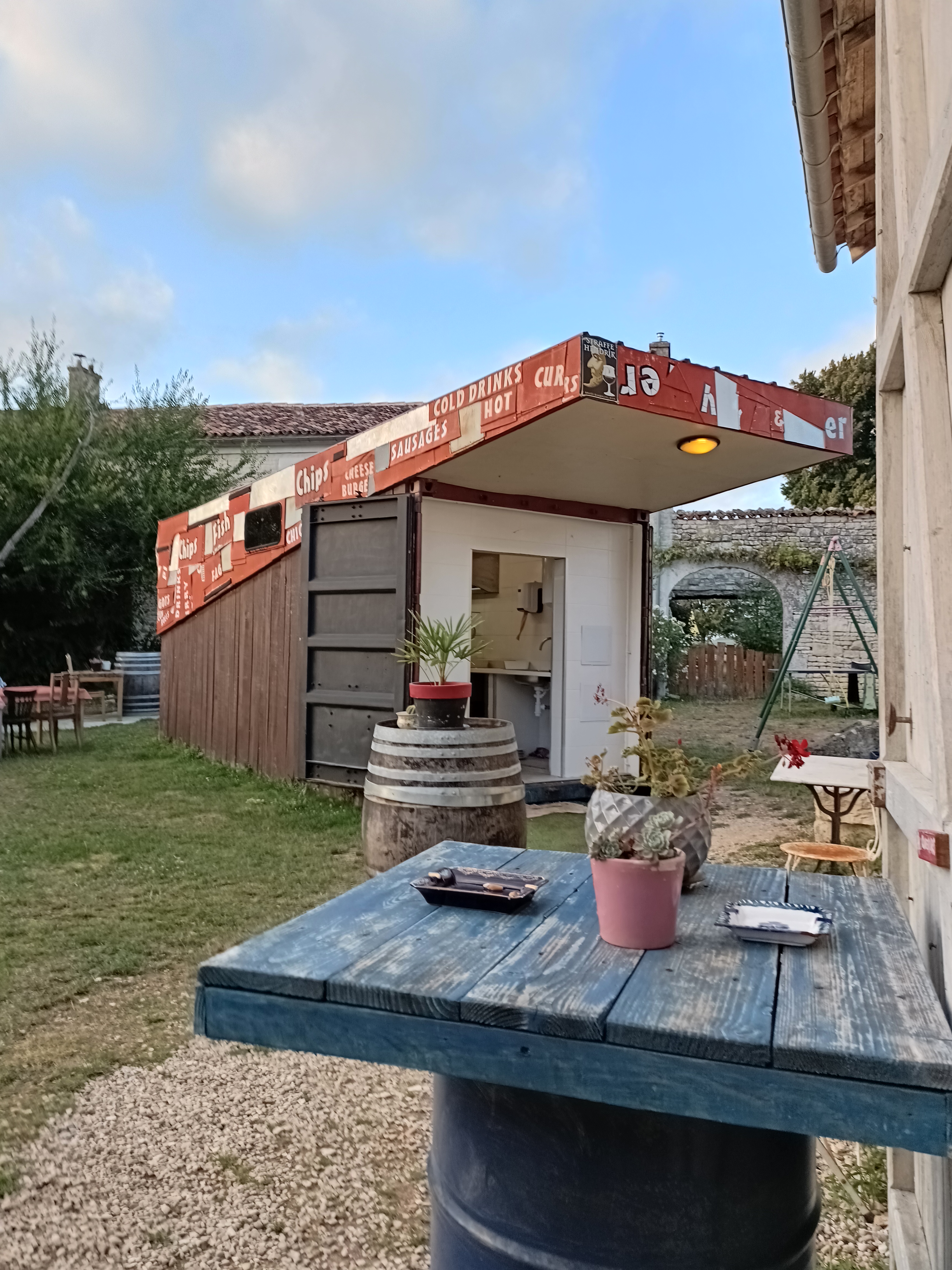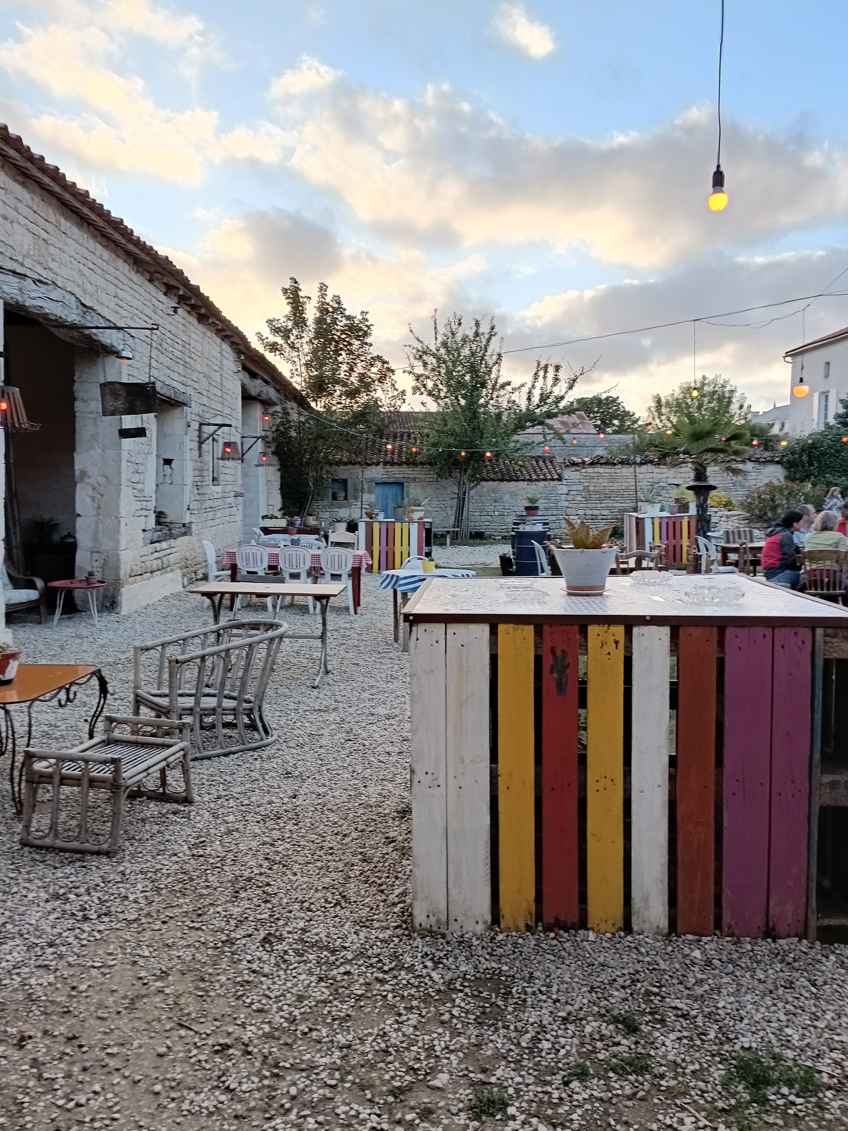 Lieu atypique ainsi que le déco .tout est nature et de matériaux recyclé, génial. Ambiance très agréable, personnel également ainsi que la nourriture bref une perle au milieu...des champs ! On reviendra...