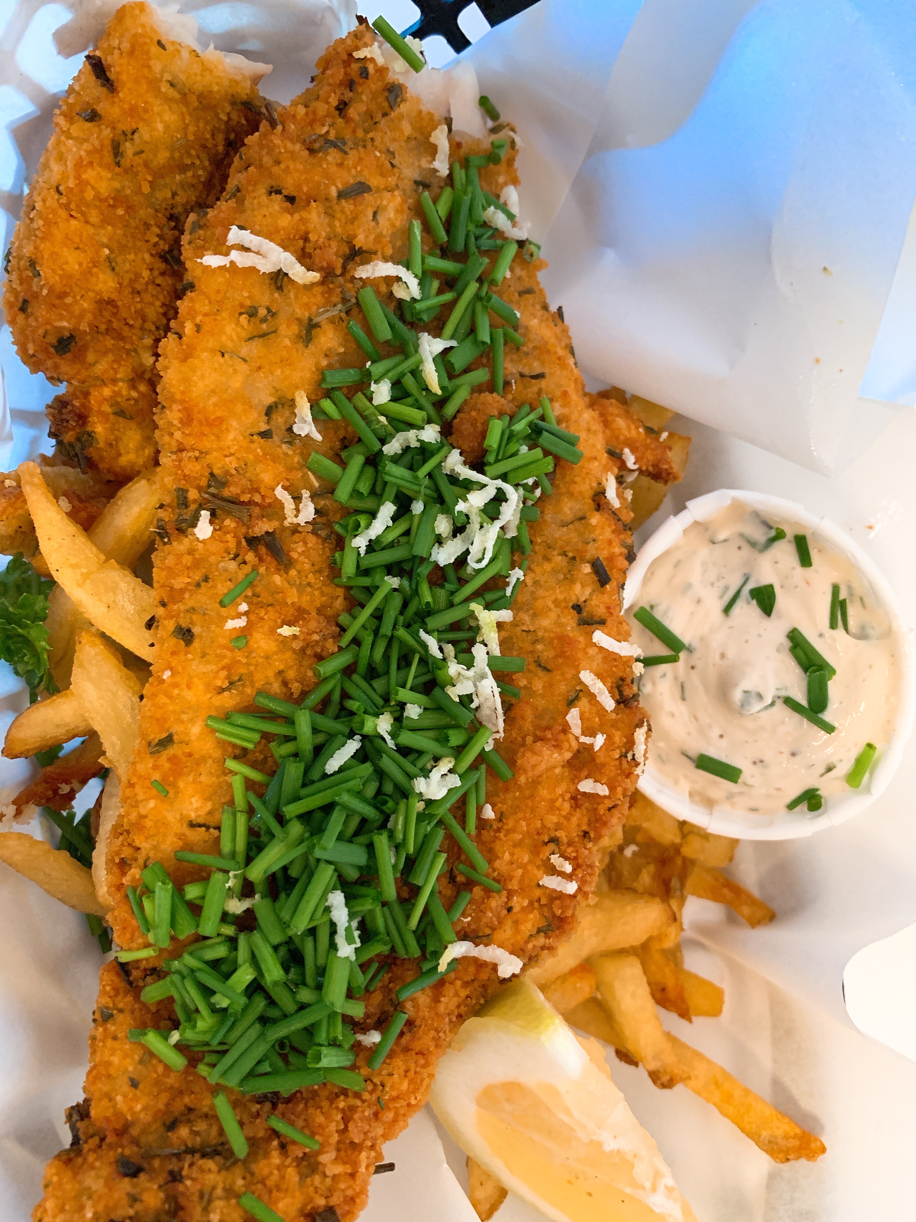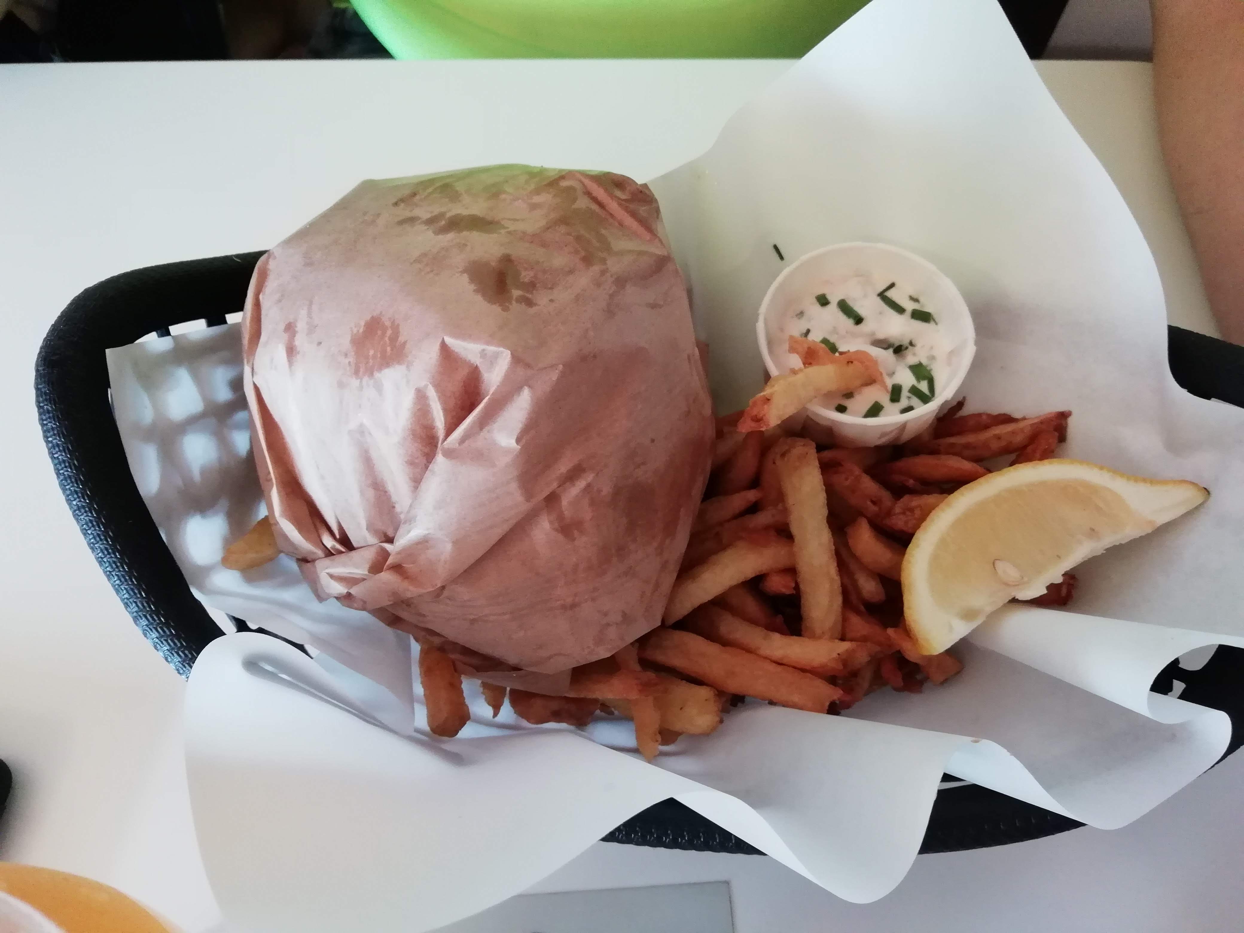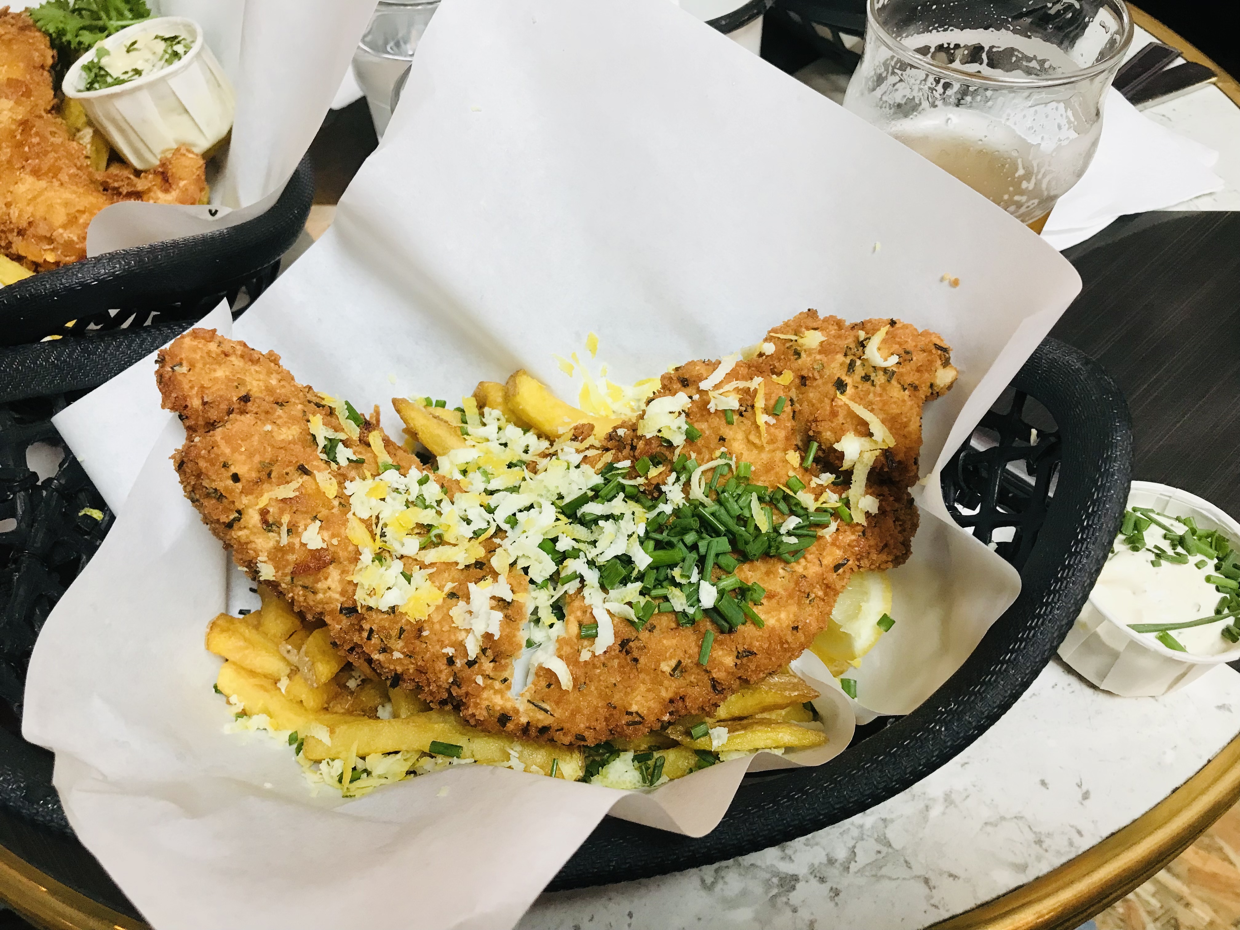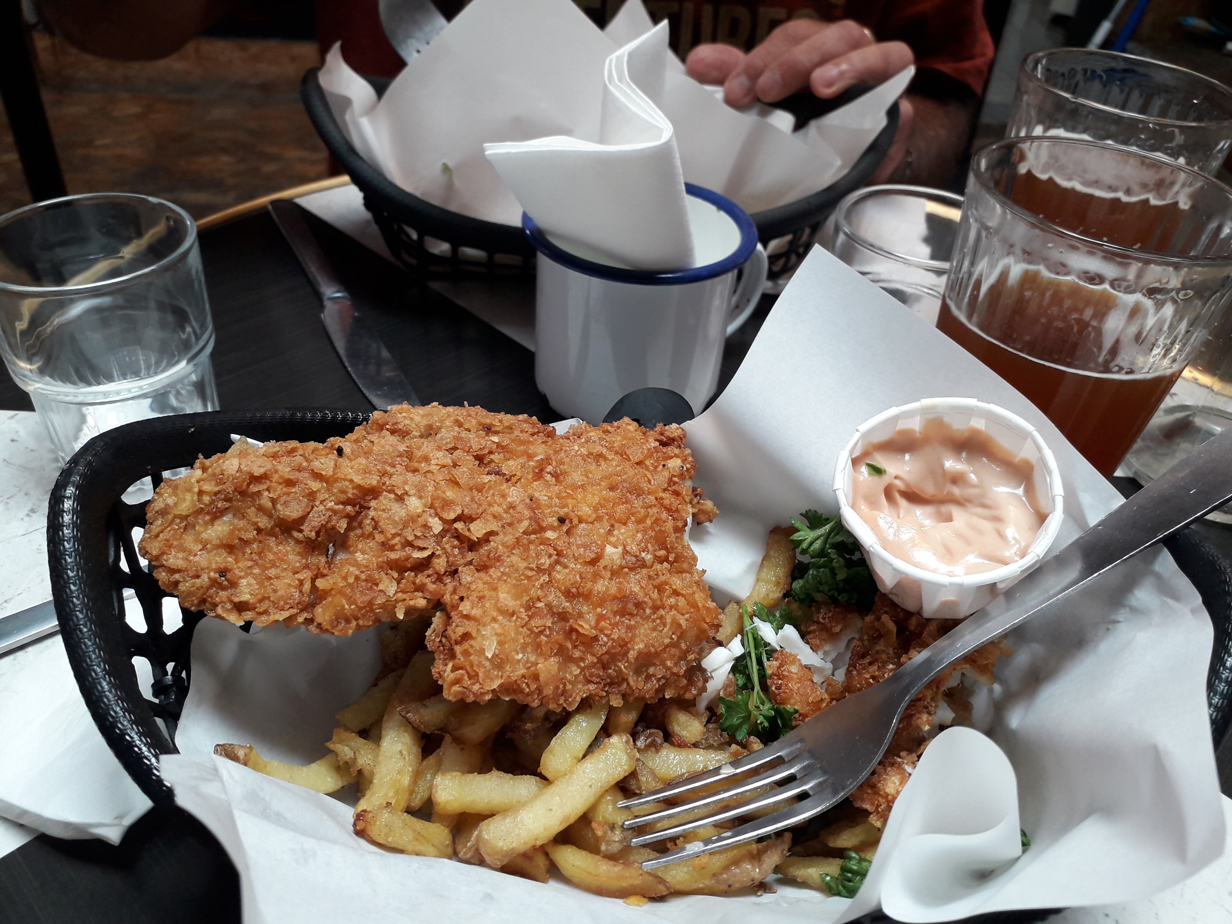 Le fish and chips est délicieux et d’une bonne quantité (la photo est une fish and chips chapelure citron-ciboulette).
