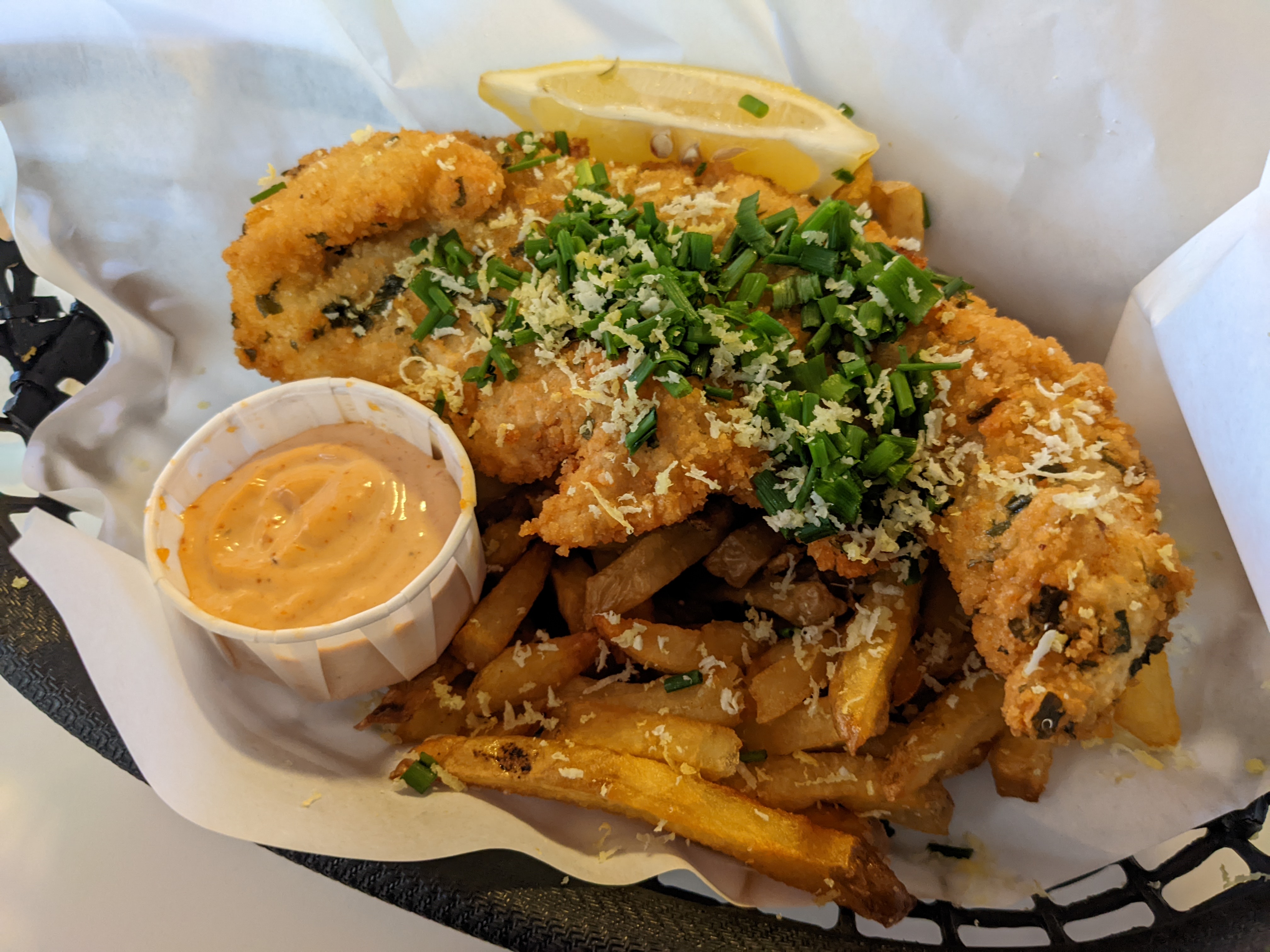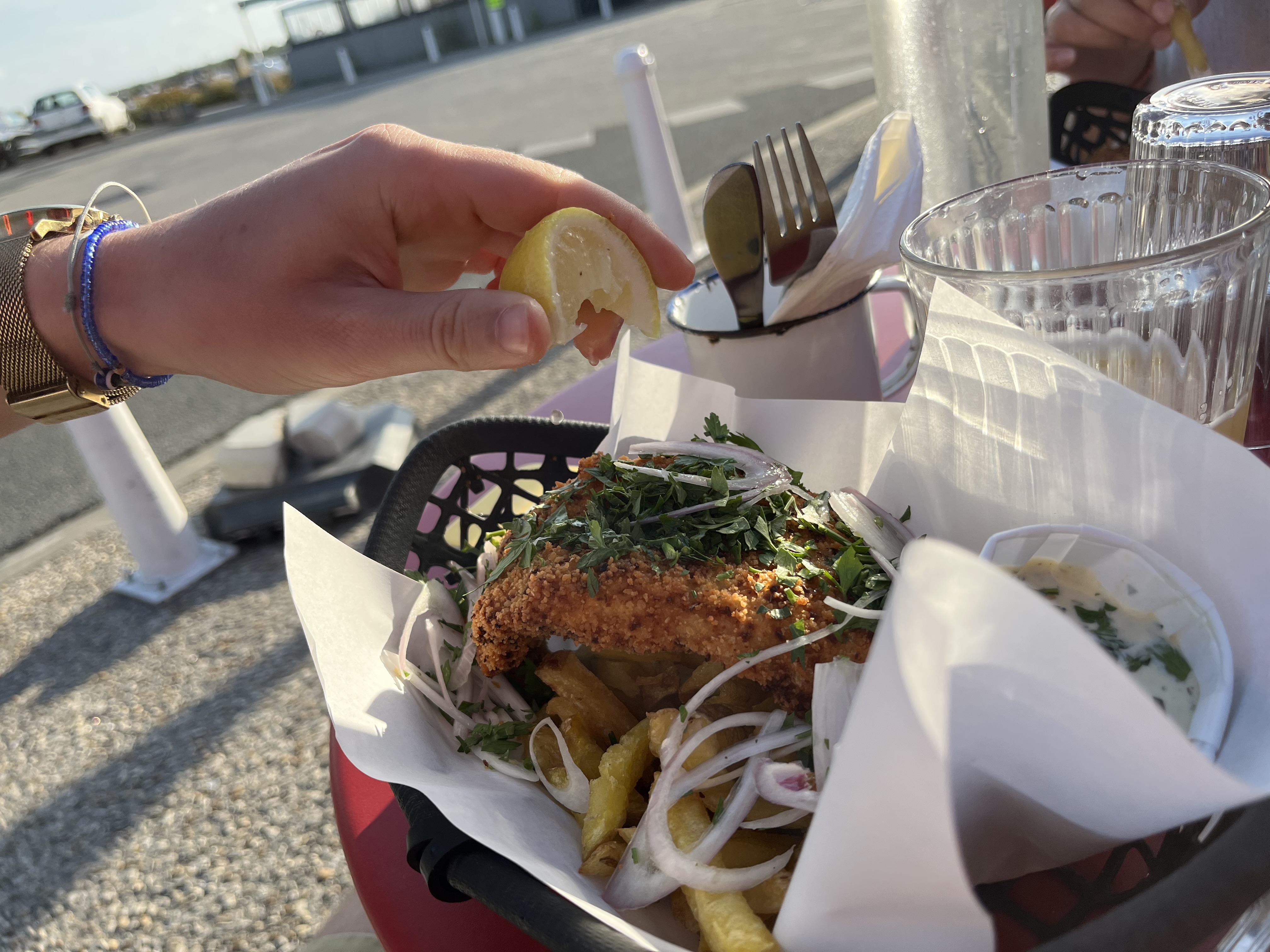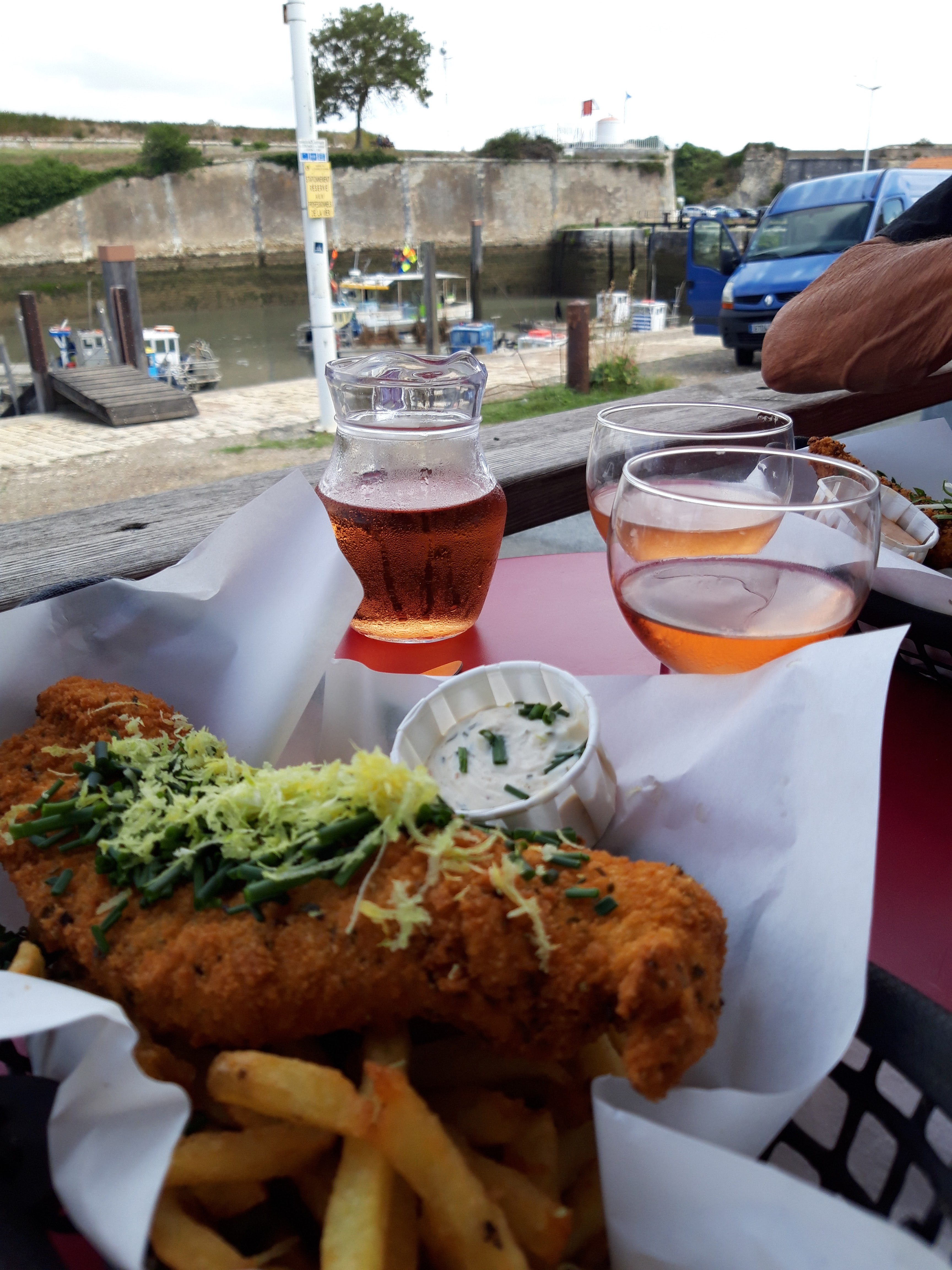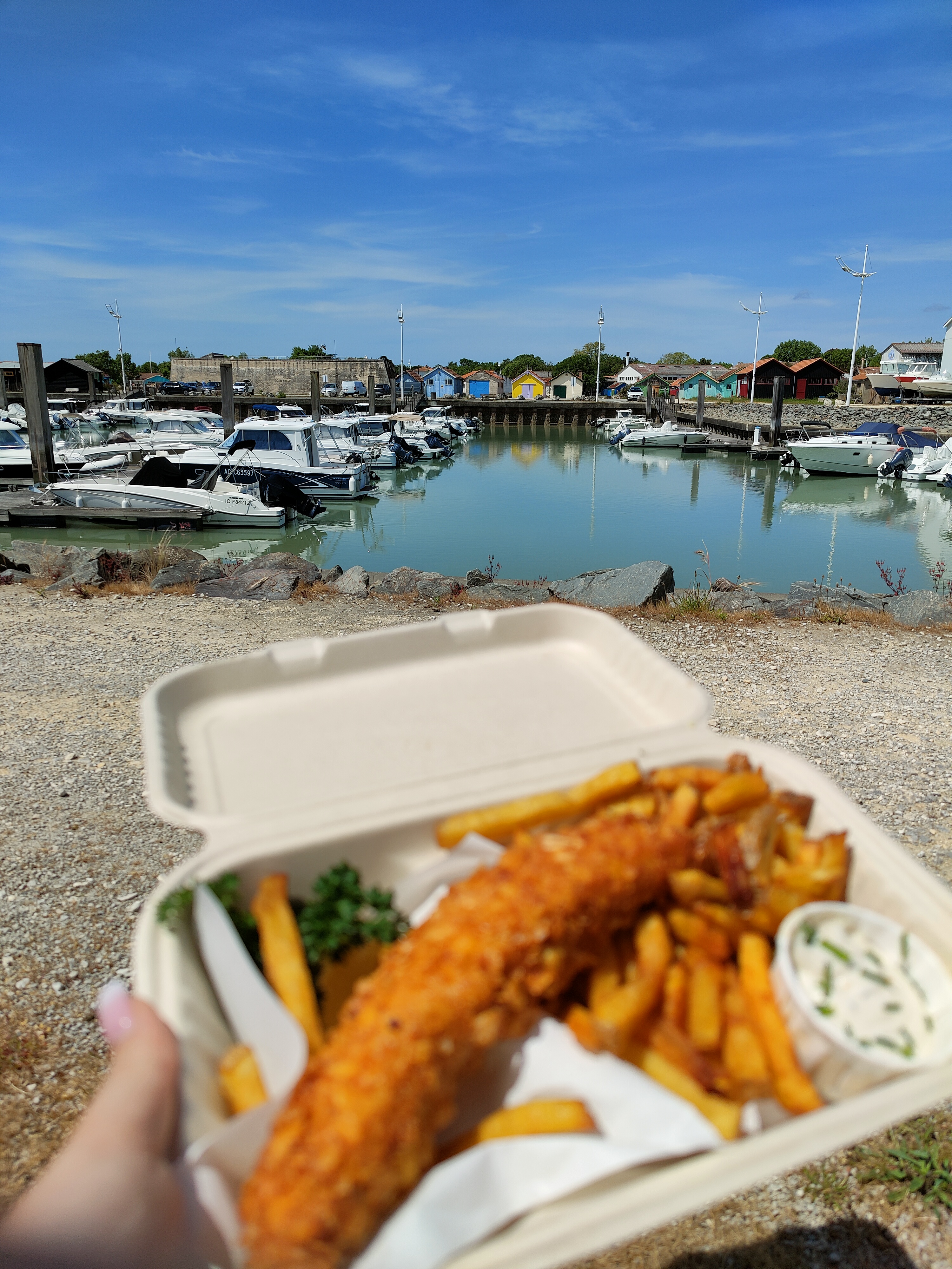 Super concept de spécialité de fish n’ chips façon île d’Oléron. Jolis morceaux de poisson frais, on choisis sa panure (citron ciboulette, etc...), sa sauce (craquez pour la creamy à la ciboulette aussi !) et les frites sont maison à base de patates fraîches. Deco sympa, serveurs tout aussi sympas. Bref, très chouette adresse pour bien manger sur Le Château d’Oléron assez rapidement et pas trop cher (9,80€ le fish and chips)