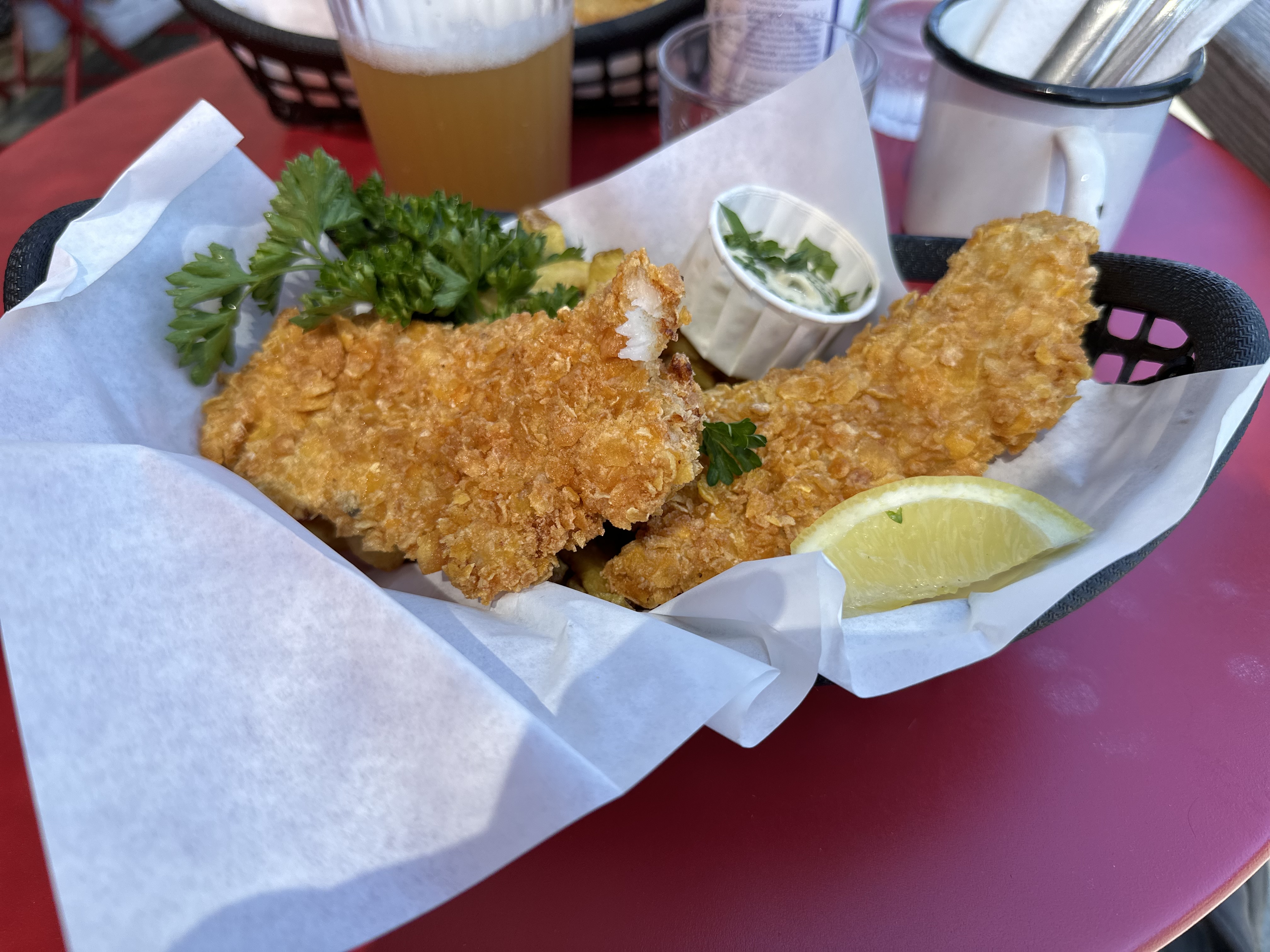 Déjeuner dans ce cette jolie cabane nous a fait un bien fou ! Le fish and chips est excellent le poisson est frais du jour ! Les serveur, malgré l'affluence en week-end de 1er Mai, on pris le temps de nous décrire les différentes bières locales (car beaucoup de choix) et de blaguer avec nous. Je recommande vivement cet endroit !!!