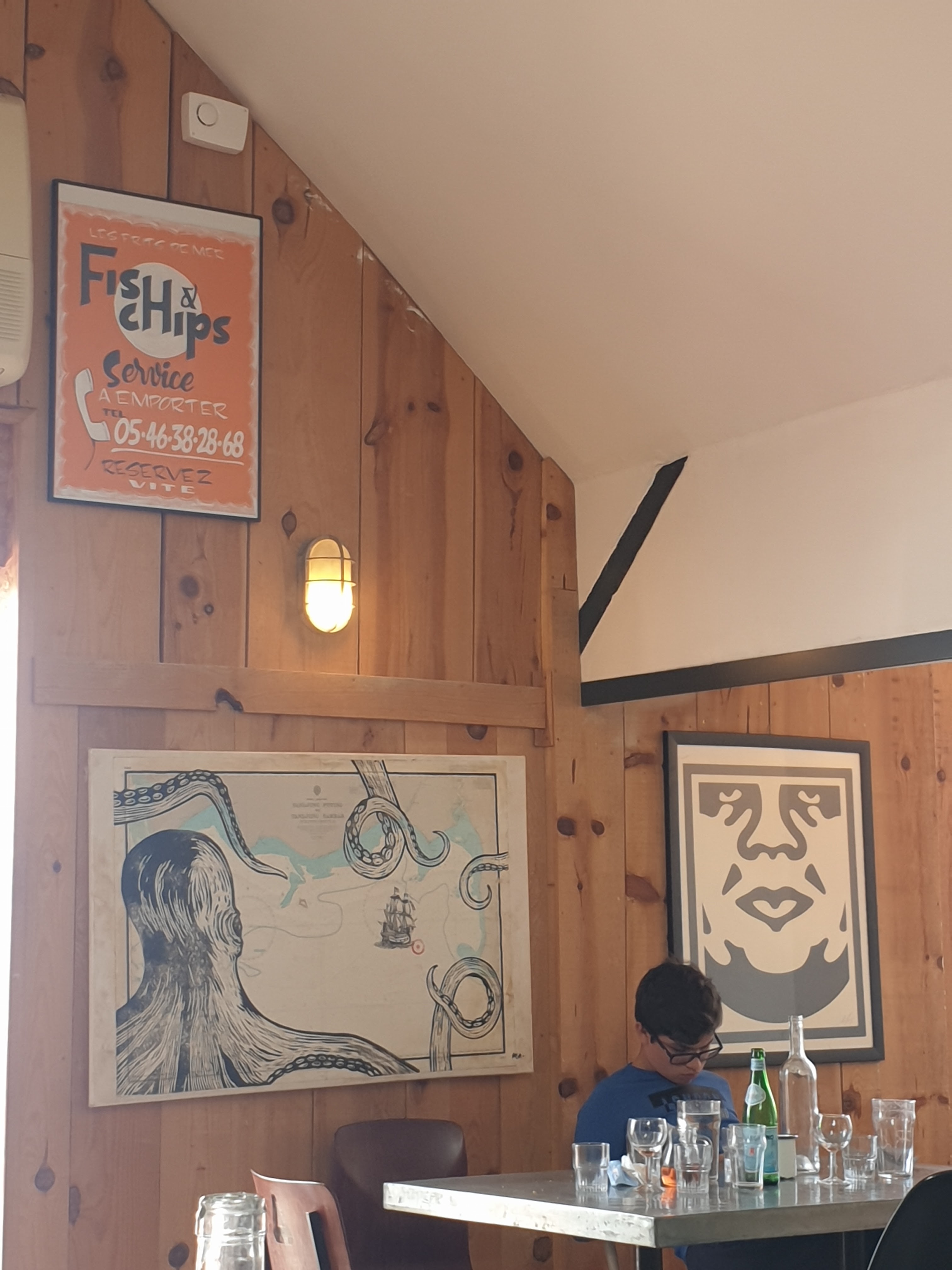 Alors voilà tout simplement l'adresse où s'arrêter si on on passe dans le coin... Comme ça on pourrait ce demander ce qu'un fish and chips a de spécial.... Hé bien tout simplement un cadre très agréable, propre et original. Un personnel très agréable mais sans fioritures, mais surtout leurs plats... Des frites vraiment maison, avec un vrai goût de pomme de terre, du poisson très frais et une panure croustillante et incroyablement efficace sans oublier leur sauce fumée qui va terriblement bien avec. Je pensais en avoir fini et non ... Leur riz au lait, un vrai, servi avec du caramel pour la gourmandise, qui vient clore malheureusement ce moment si agréable. Le seul regret que j'ai et de ne pas avoir recommandé un fish.. Bravo à toute l'équipe. PS... C'est tellement frais qu'ils n'ont pas d micro ondes et qu'ils ont fait chauffer le plat de mon fils au bain marie..la classe non ?