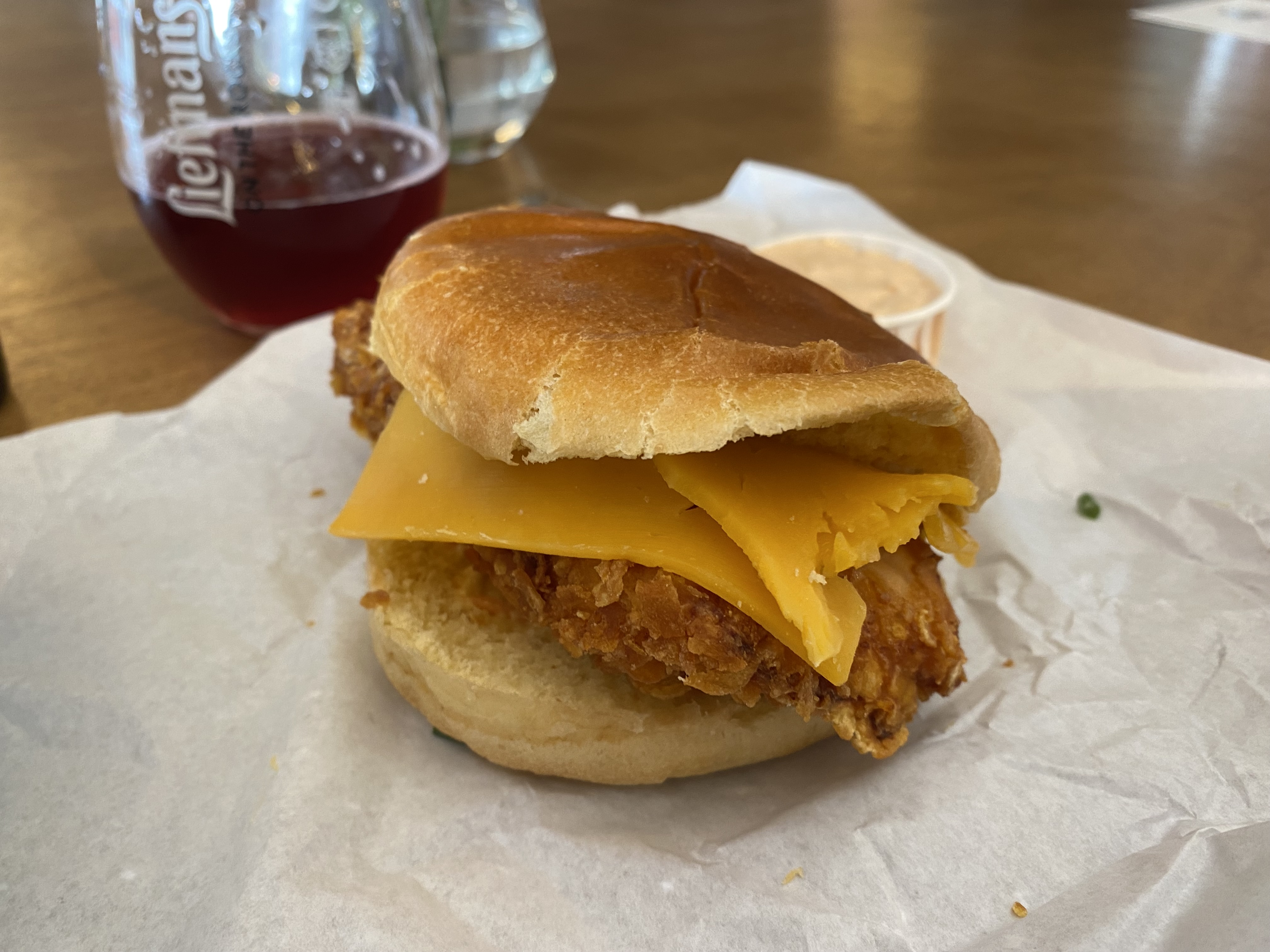 En plein coup de feu, ambiance bruyante mais accueil sympa. Le service est rapide. Filet de saumon et frites correctes, hamburger chiken peut mieux faire.