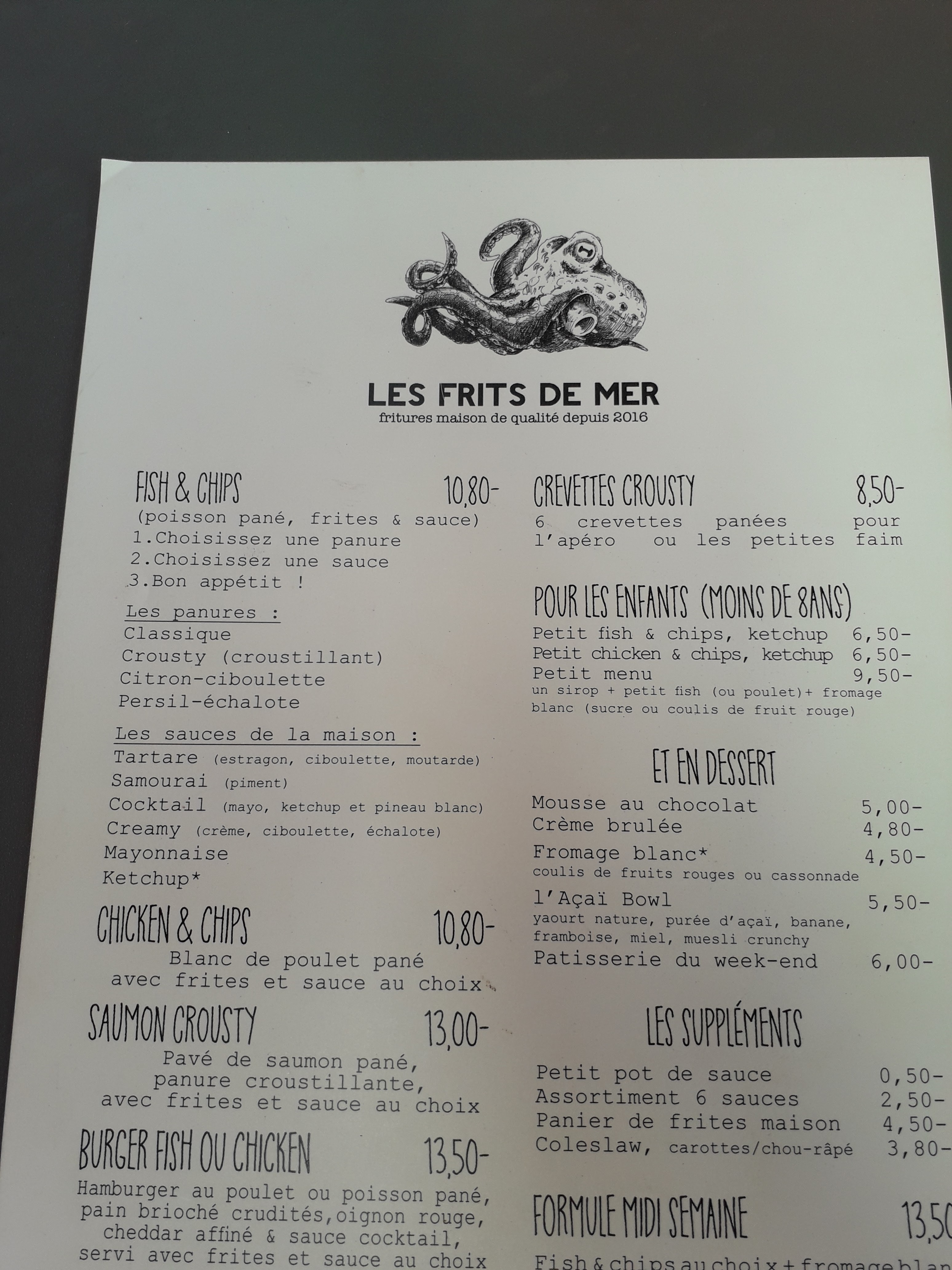 Accueil sympathique et bons produits. En résumé un très bon fish&chips avec une touche d'originalité sur les compléments (pour moi zeste de citron râpé et ciboulettes) et certaines recettes (crevettes panées). A noter des menus enfants complets et très bons aussi.