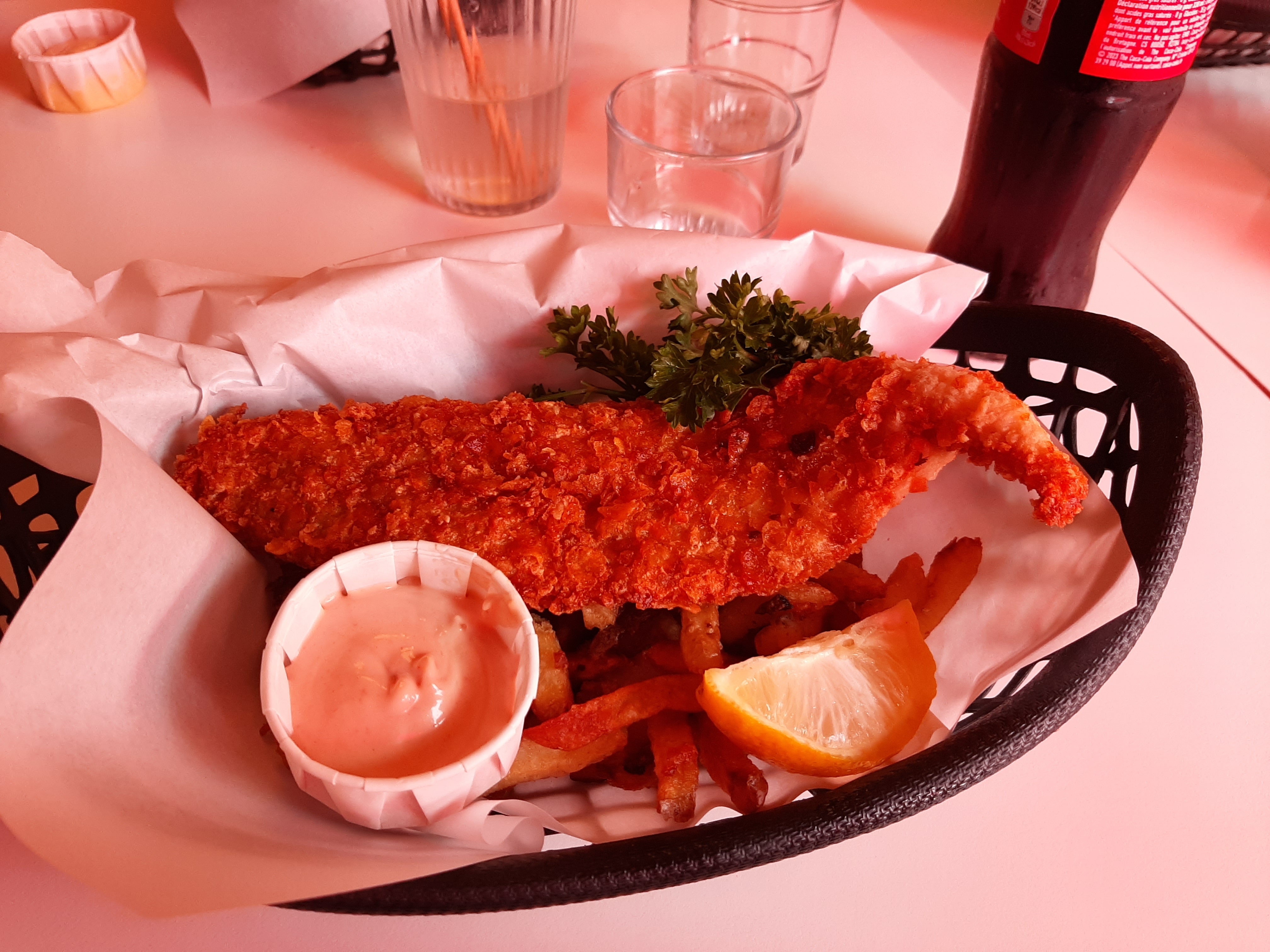 Bonne adresse pour un Fish and chips. Bon choix de panures et de sauces. Ces dernières sont faites maison. La décoration est vraiment superbe. Sauvant victimes de son succès il est fortement conseillé de réserver les soirs de pleine saison estivale. Le personnel est vraiment sympathique et dynamique. Un seul regret, trouvé du fromage industriel dans les burgers ...