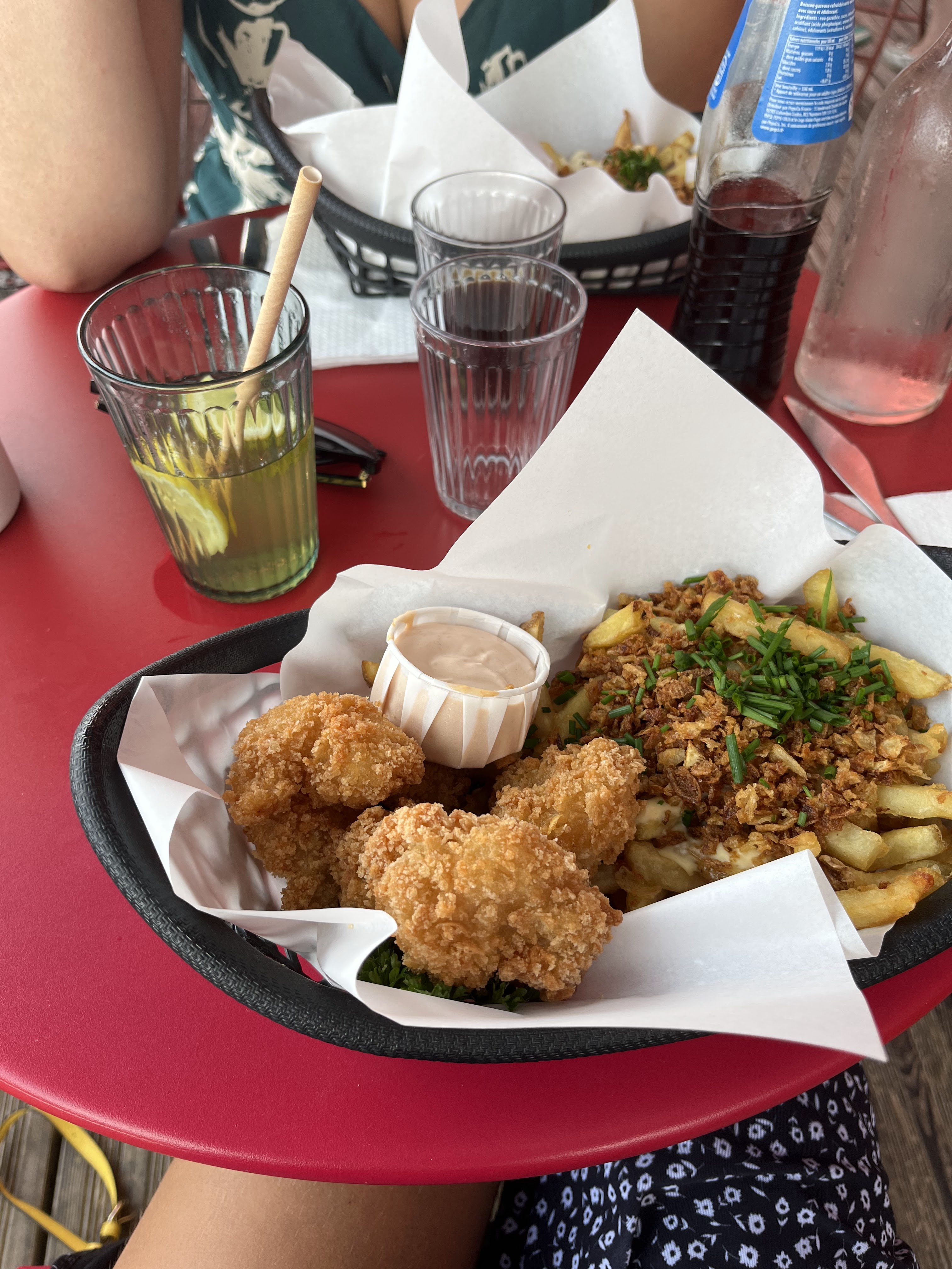 J'adore les crevettes et le poisson frit, je n'ai pas été déçu. Dîner sur la terrasse avec point de vue sur le port, presque parfait, car petit bémol sur le service: obligé de commander la nourriture en même temps que les boissons et il manque quelques centilitres dans les pintes.