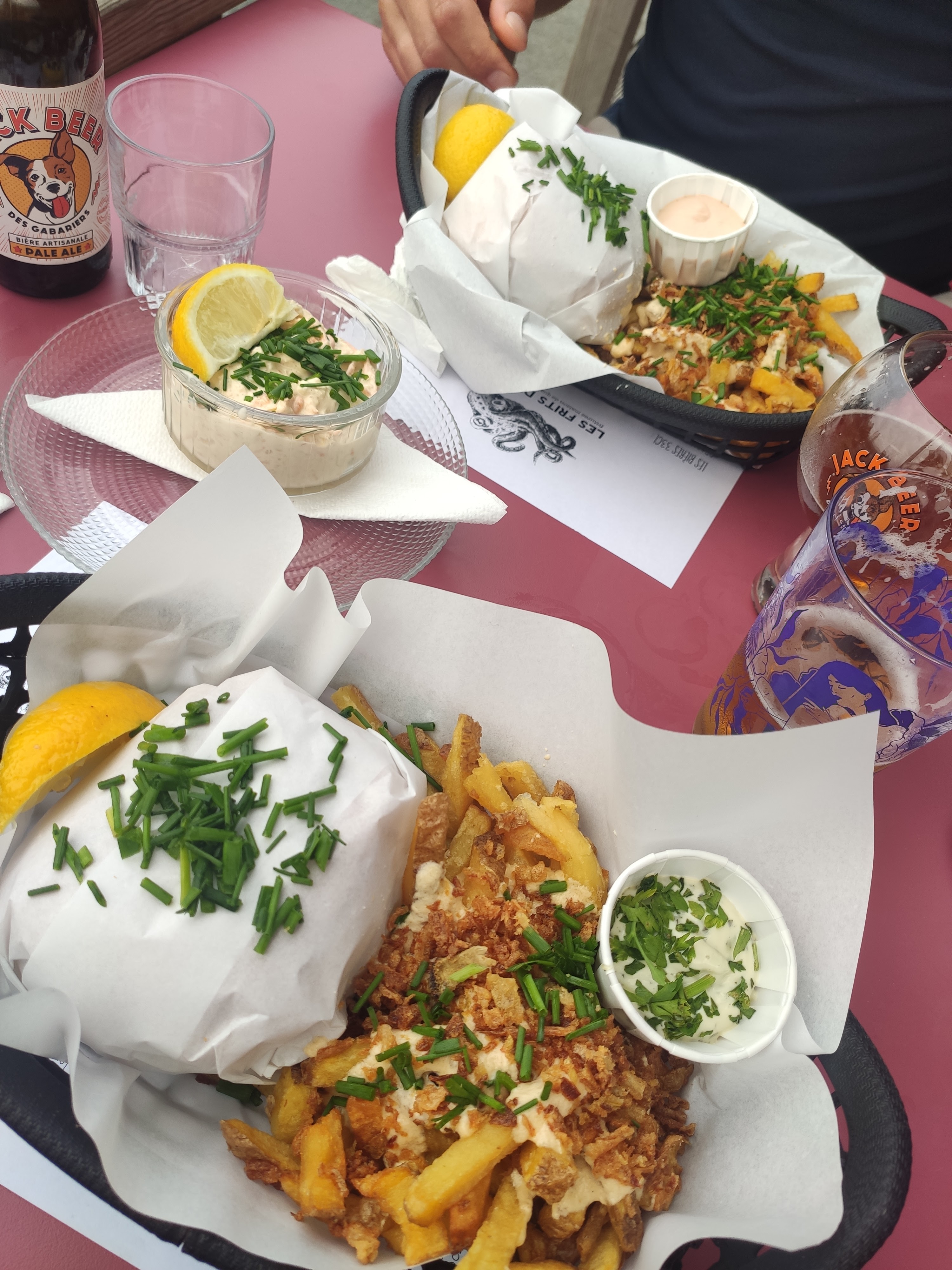 Spot très sympa, pensez à réserver pour bénéficier de la vue terrasse sur les bateaux ostréicoles. Spécialité de fish and chips très bien maîtrisée, c'est savoureux. Choix de panures différentes, sauces maison. Soyez zen, ne pas céder à la pression des serveurs pour le renouvellement des tables lors de la haute saison, ça peut s'avérer dérangeant.
