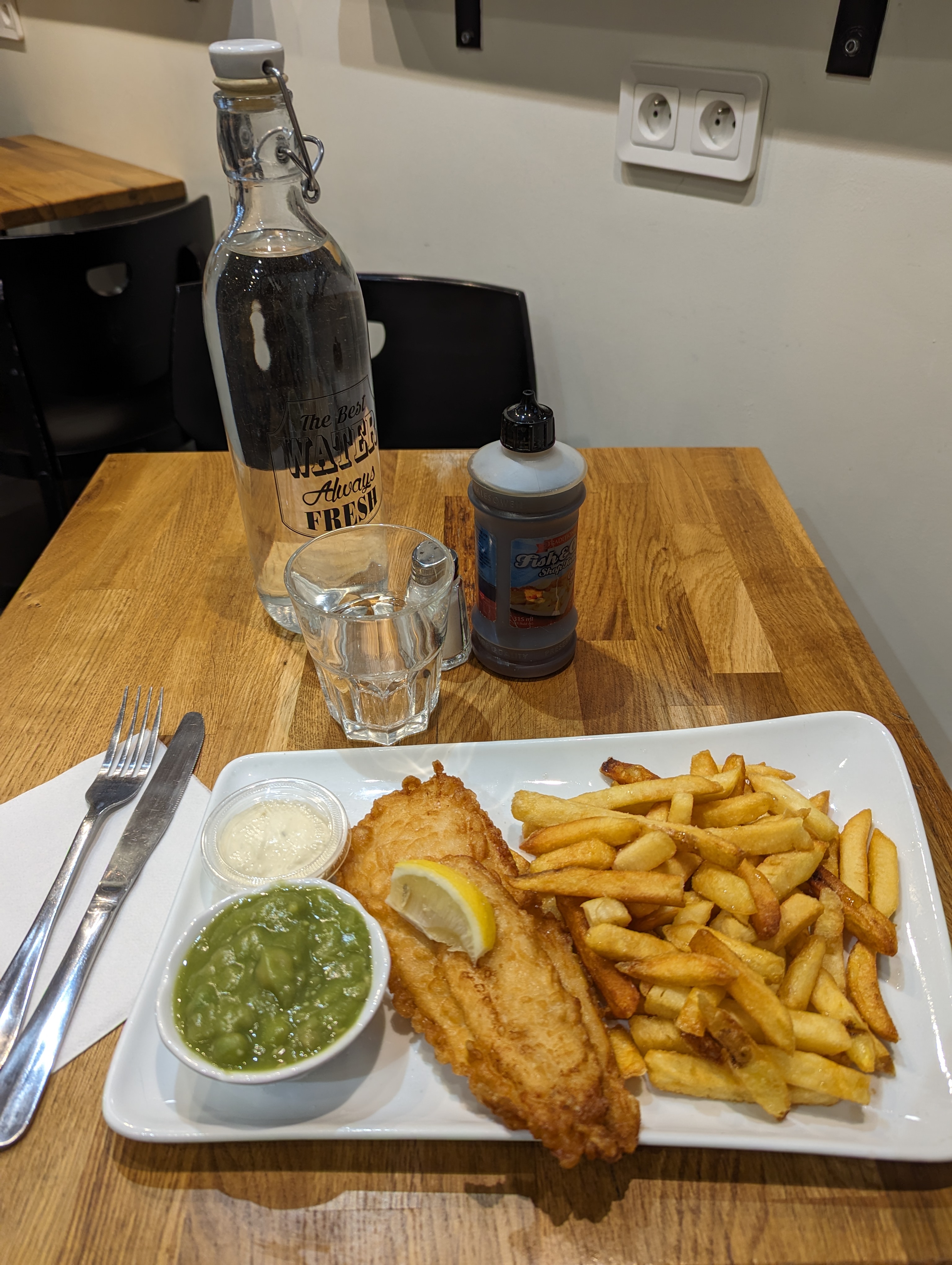 Fish & Chips parfait jusqu'au vinaigre. Service parfait. What else?
