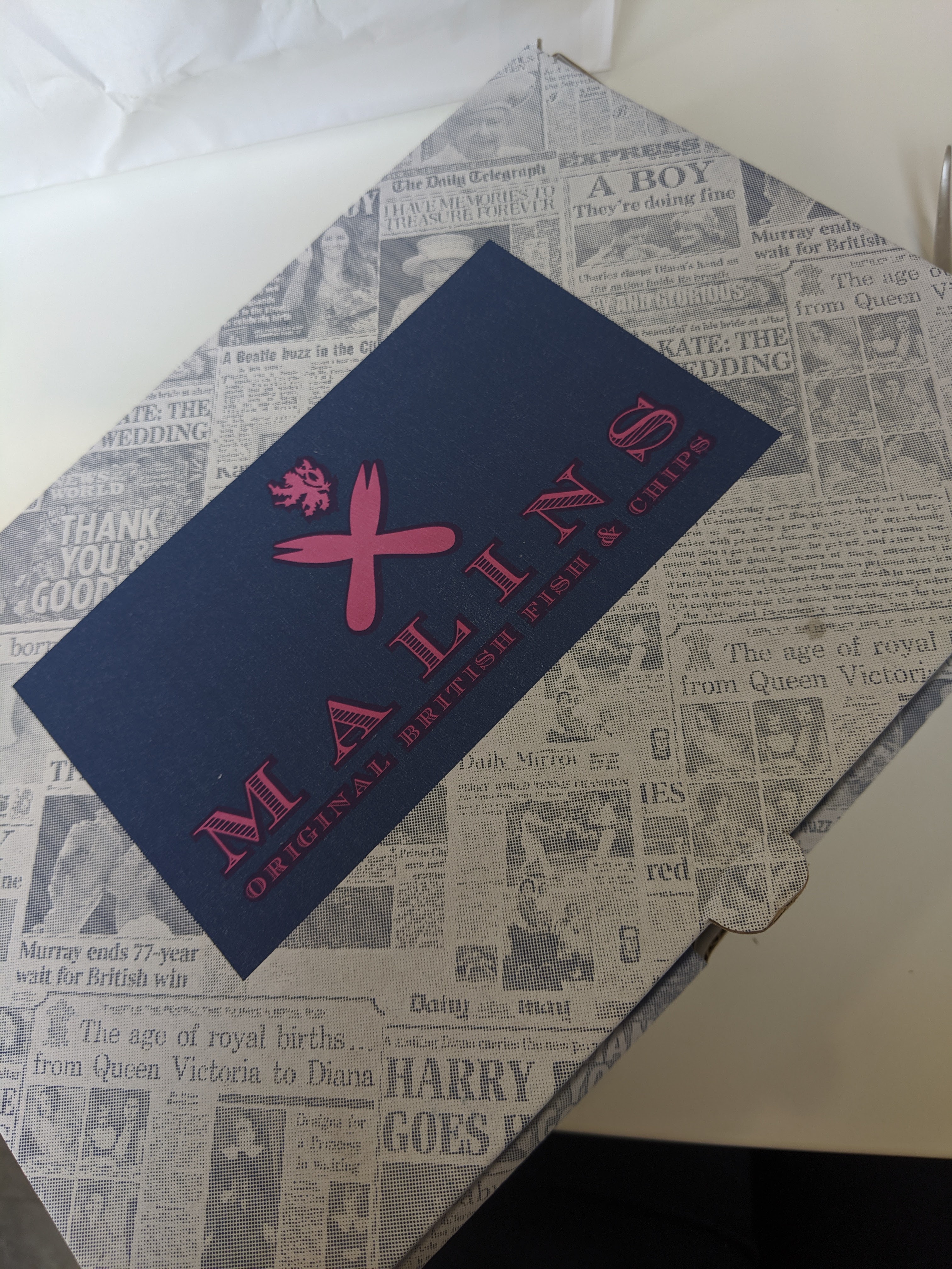 Vraiment pas mal pour un Fish and Chips parisien! Service rapide, personnel sympathique et nourriture de bonne qualité; à paris c'est dur de trouver un bon Fish and Chips. Chez Malins c'est du vrai poisson et de la vraie friture! Un bon point pour servir de la mushy peas et la possibilité d'avoir de la sauce curry (comme à l'anglaise!) même si les français ne sont pas fans au départ :)