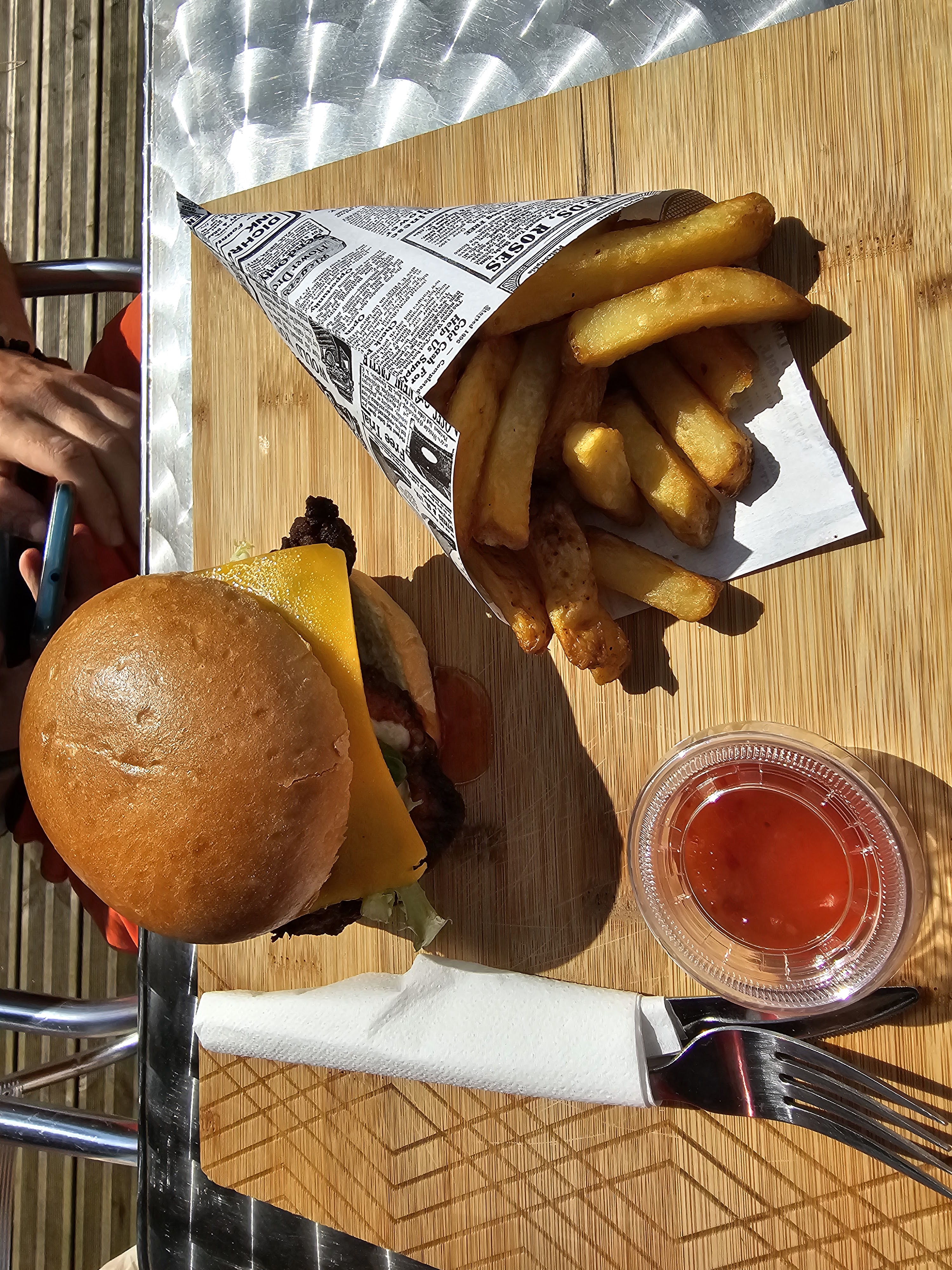 C'est annoncé et répété au comptoir, 95% des produits sont maison. Et c'est sûr c'est maison et c'est bien réalisé. Mais j'ai trouvé qu'il manquait un petit quelque-chose : Les acras sont bons et gourmands mais ultra gras (des acras quoi 😉) le fish n chips est bon mais m'a semblé petit, fade malgré le vinaigre, le citron ou la sauce tartare. Le cheese cake quand a lui est excellent.