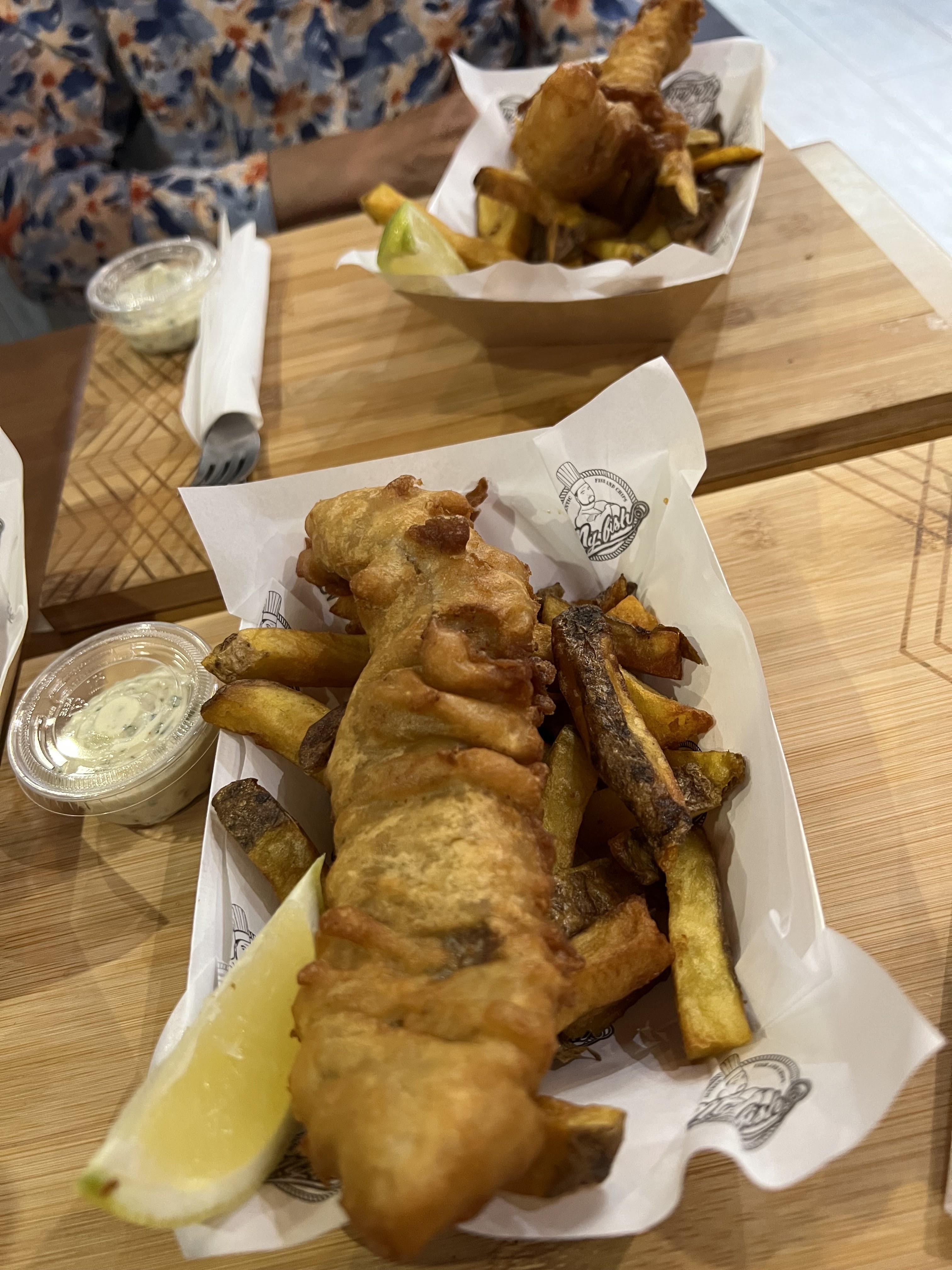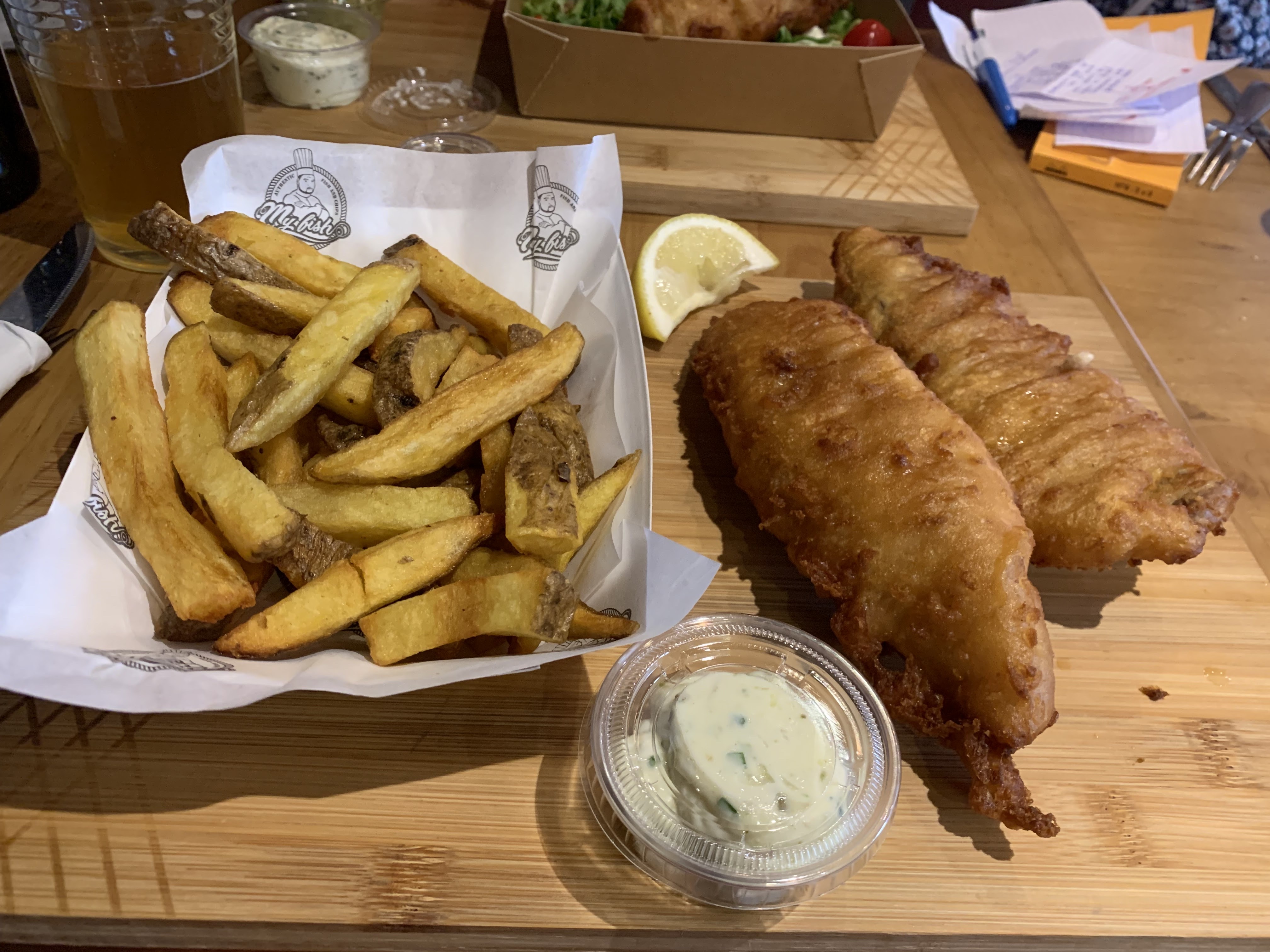 Meilleur Fish and chips que j’ai mangé! le poisson est très frais, il fond dans la bouche 😋