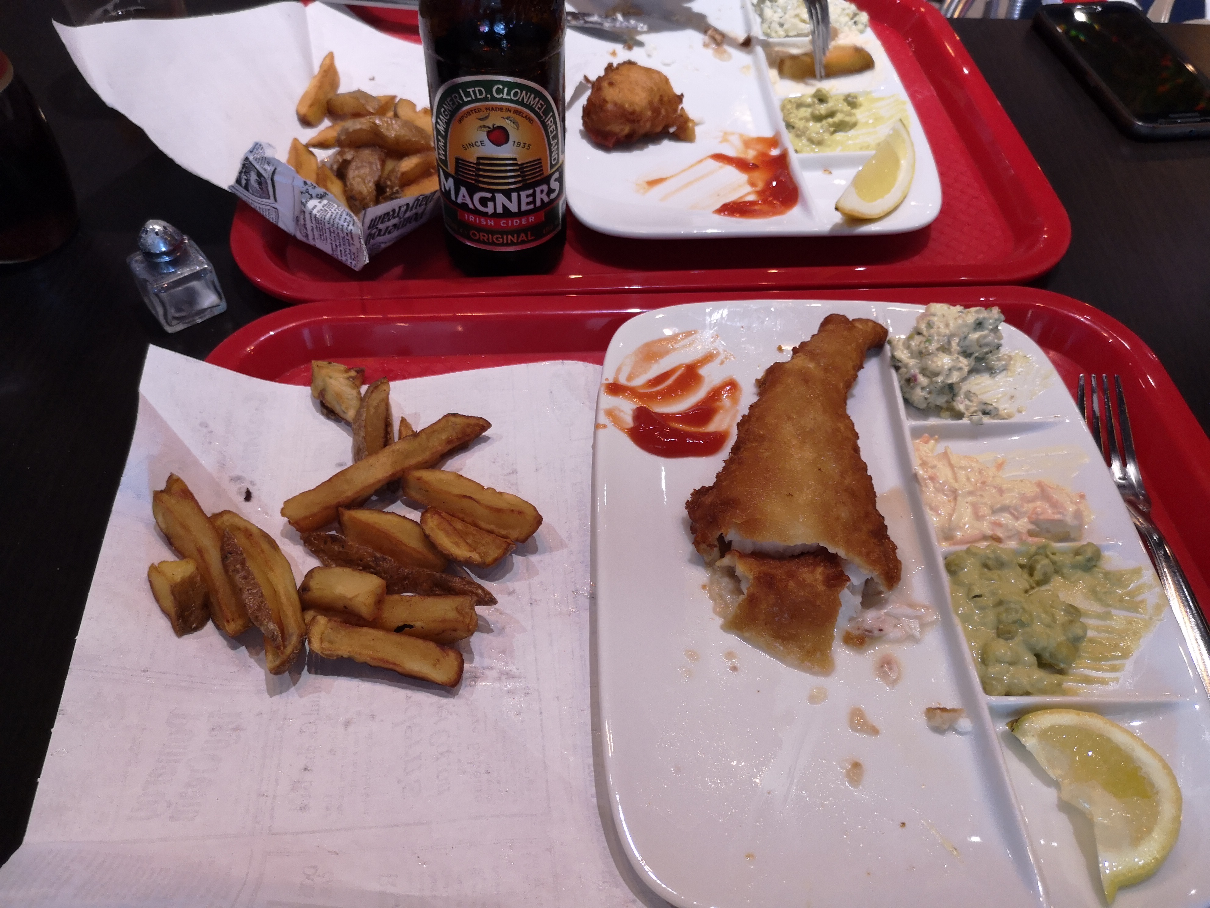 Très bon fish and chips, gérant qui en fait peut être un peu trop mais qui veut bien faire.