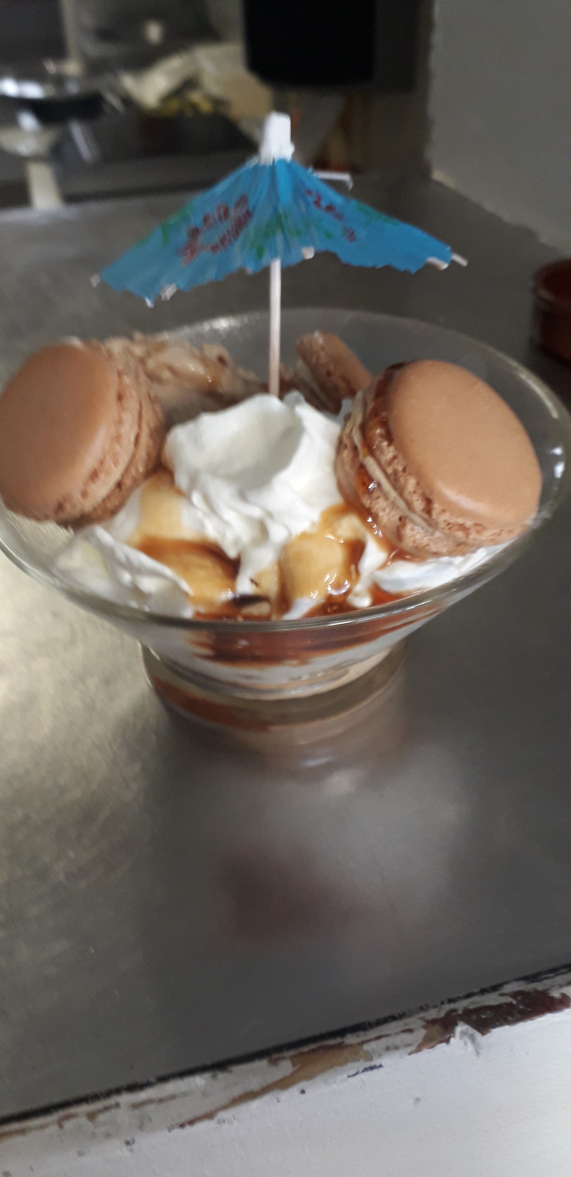 Bon accueil 😉 produits frais et délicieux ! ! A ne pas louper. .Le dessert : macaron au beurre salé et sa boule de glace. ..Une tuerie 😊 Merci 😉