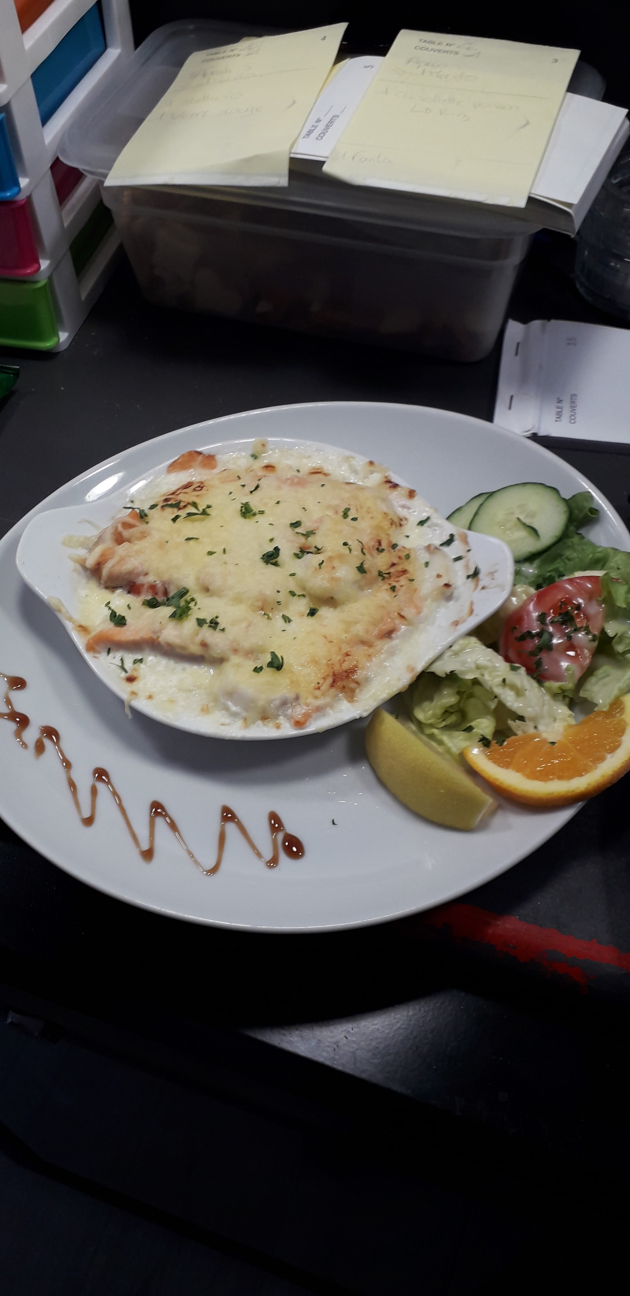 Gratin de cabillaud. Très bon 😋. Service rapide et bien sympathique. J'y retournerai avec plaisir.