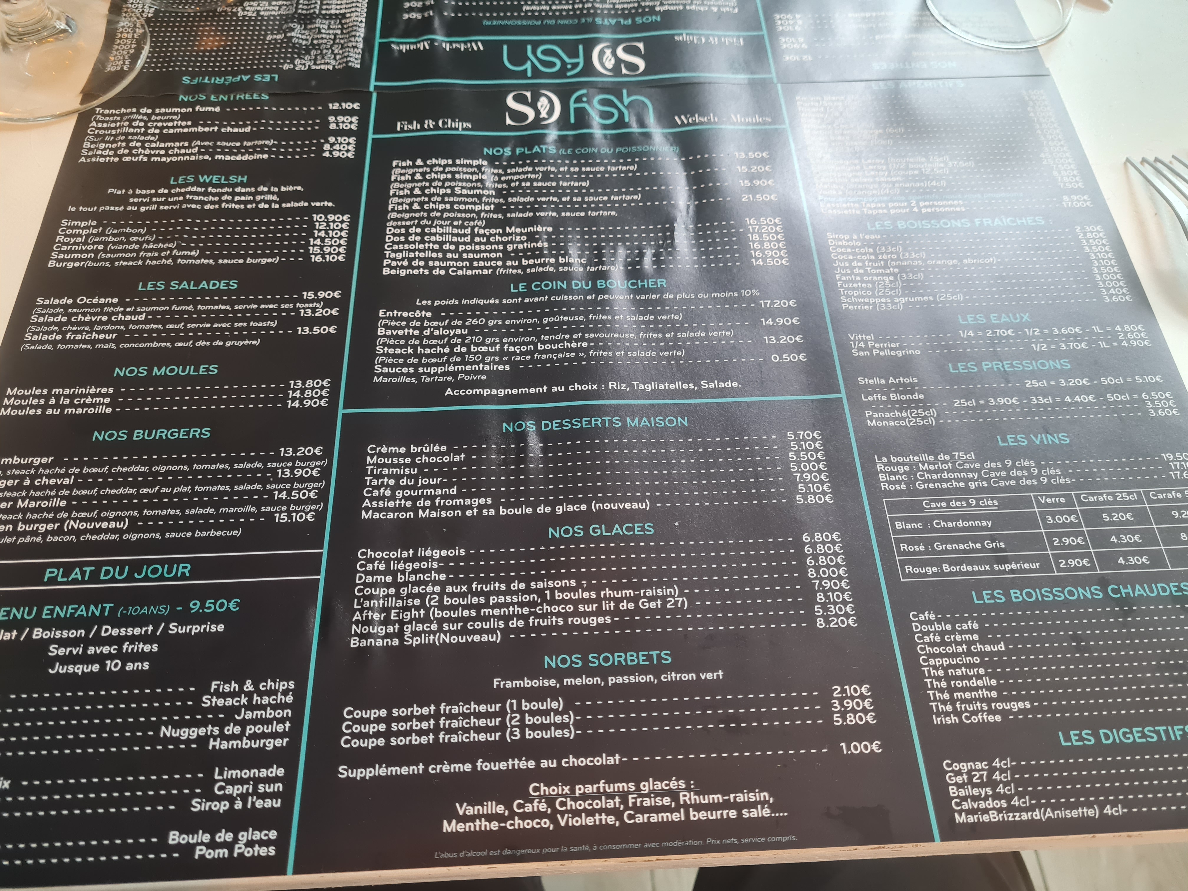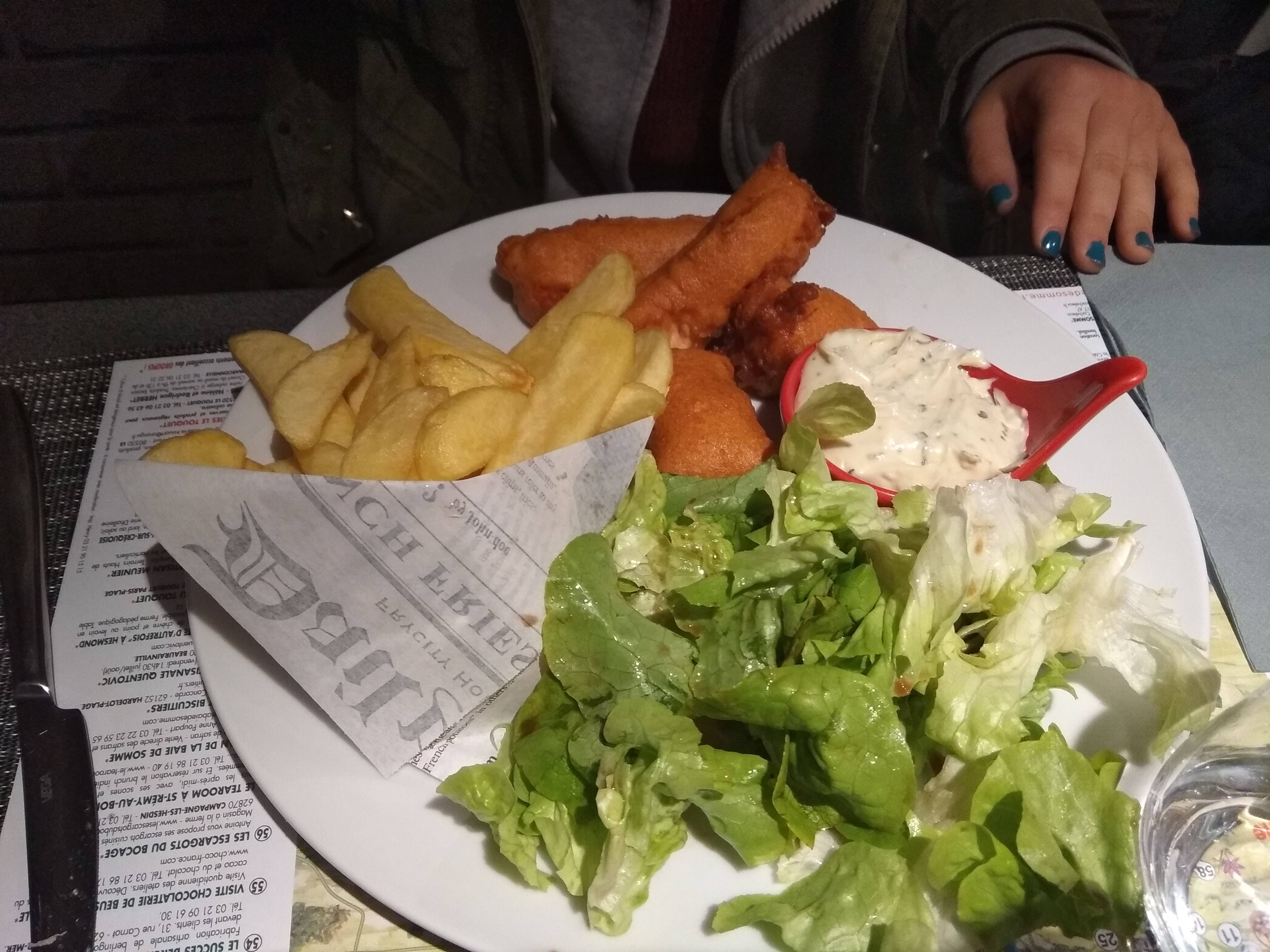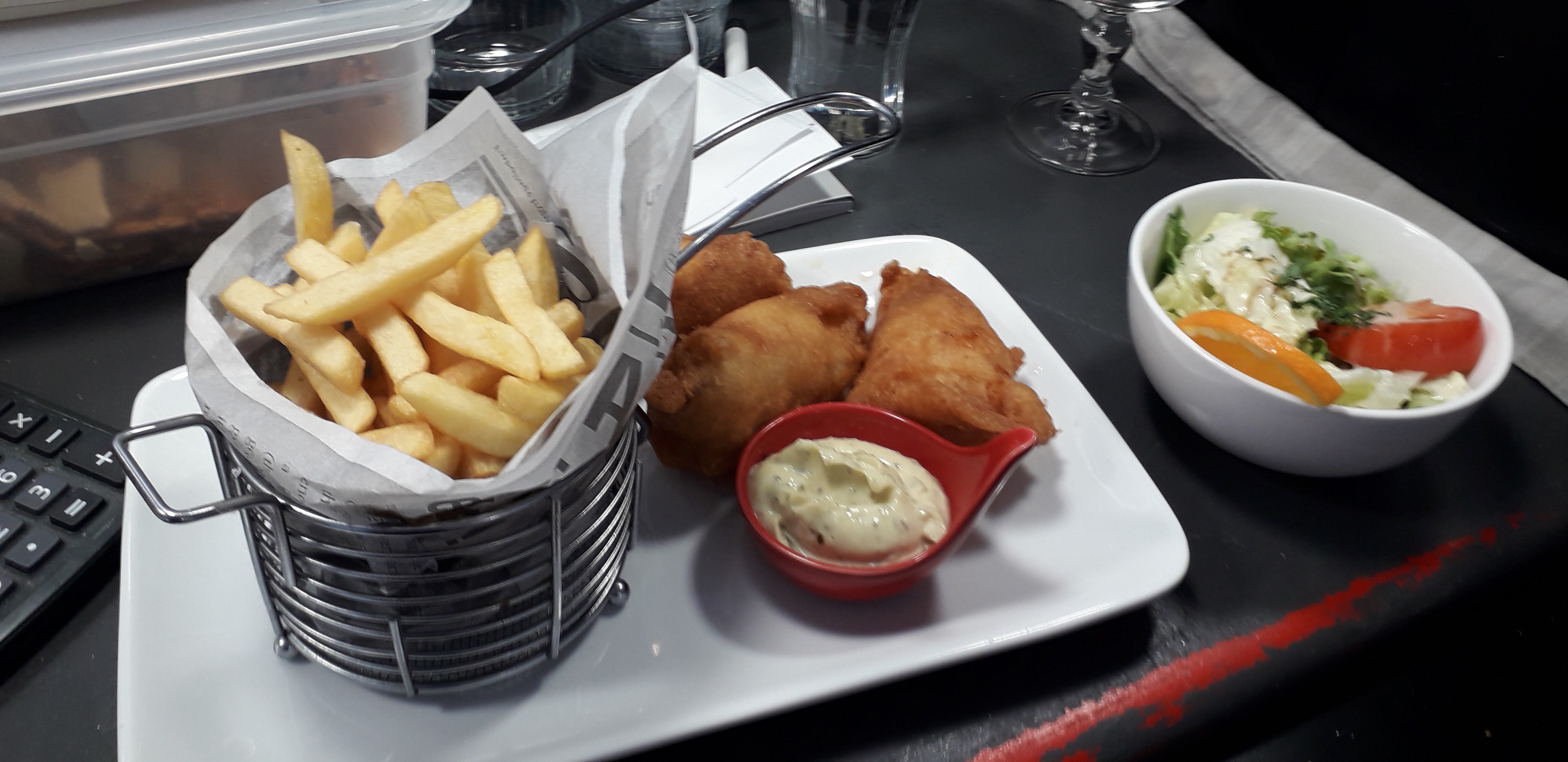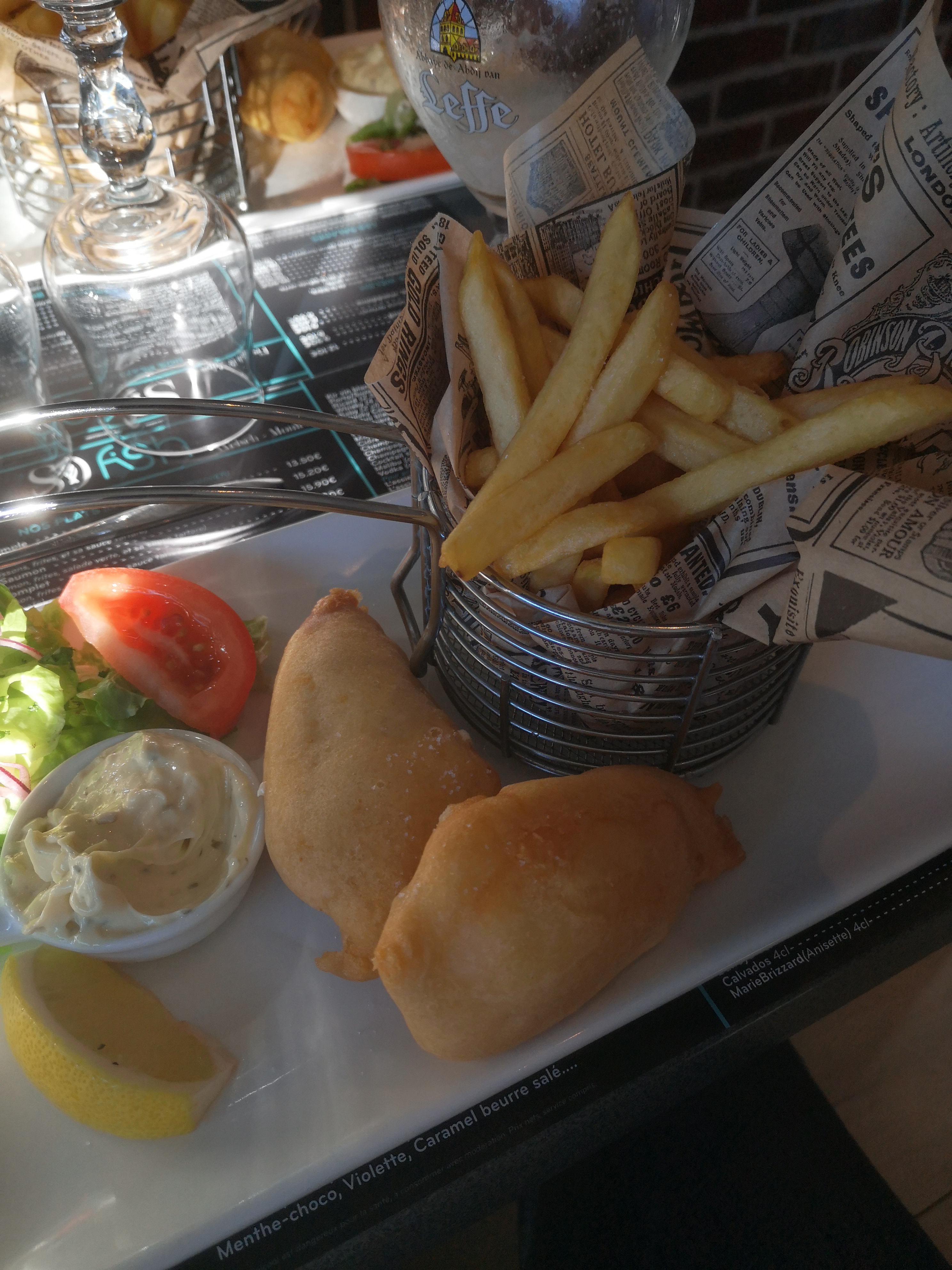 Nous étions venus pour le fish and chips. Il était correct mais sans plus, je ne suis d'ailleurs pas certain, vu la texture, qu'il ne s'agissait pas de poisson surgelé. Rien à voir avec ceux que j'ai mangé en Angleterre ou en Écosse. Visités dans la 1ere semaine de janvier 2020, ils ont également refusé de prendre des tickets resto 2019 (valables jusqu'au 31 janvier 2020, c'est écrit dessus et tous les autres établissement fréquentés à cette période ont accepté de les prendre).
